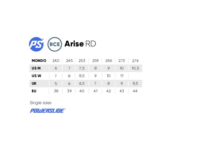 brusle Powerslide Arise RD jsou rychlé, hladké a obratné, což je činí ideálními pro bruslaře, kteří chtějí zkoumat nové možnosti na inline bruslích. Ať už se jedná o závodní dráhu, nebo pohodové bruslení po městě, Arise RD posunou vaše bruslařské zážitky na novou úroveň. Objevte, co je možné s Powerslide Arise RD!