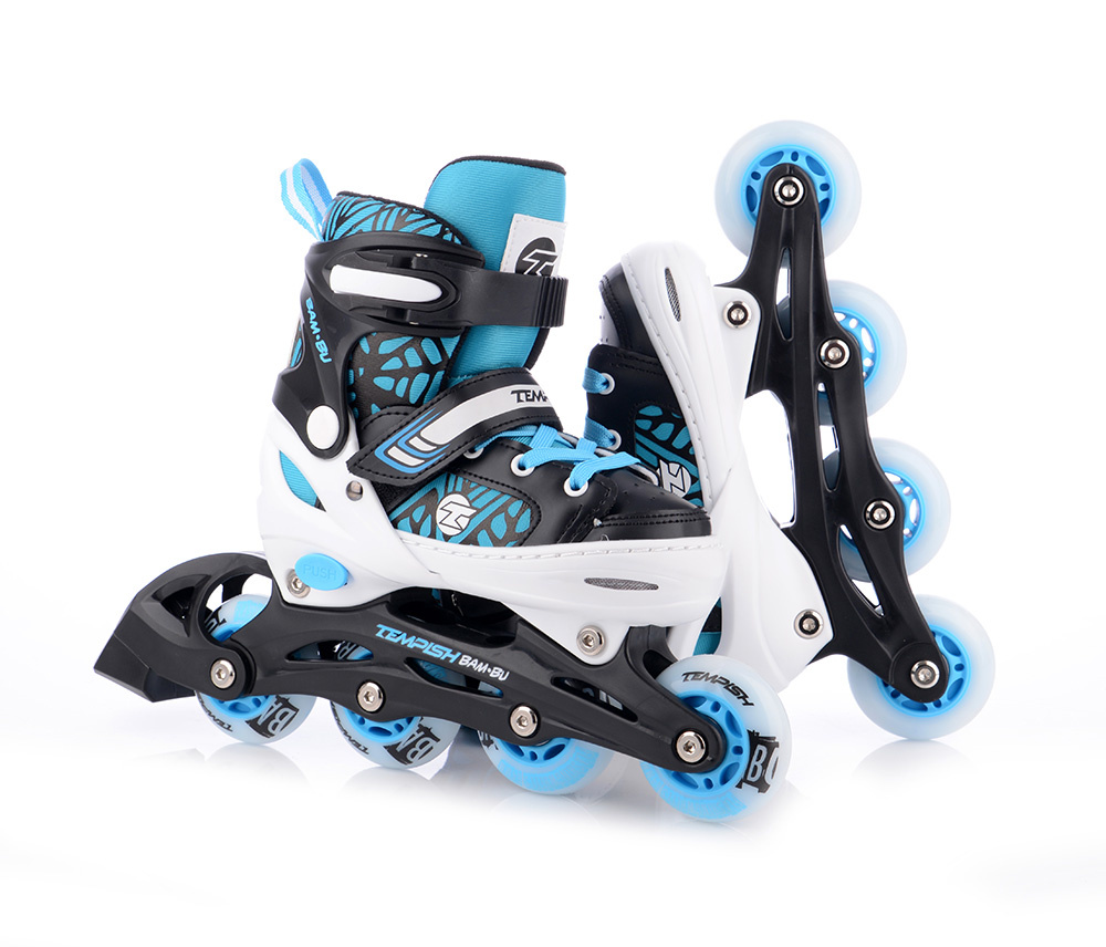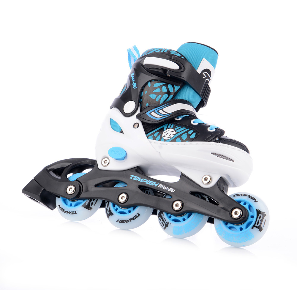 Tempish BAM-BU FLASH jsou nejmenší dětské kolečkové brusle z nabídky Tempish, ideální pro první jízdy i pokročilejší dětské bruslaře. Díky chytrému nastavitelnému skeletu začínají už na velikosti EU 26 a mohou růst spolu s dítětem – nastavení zvládnete snadno a rychle pomocí systému EASY PUSH (stisknutí pojistky a posunutí špičky).