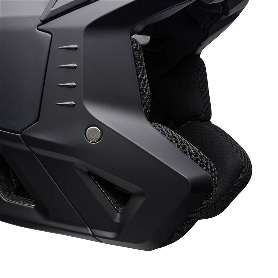 Rychloupínací držák akční kamery umístěný pod štítkem nabízí ideální úhel pro záznam POV jízd a vyjímatelné, pratelné antimikrobiální polstrování usnadňuje udržení svěžesti i při častém ježdění.