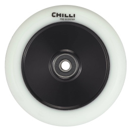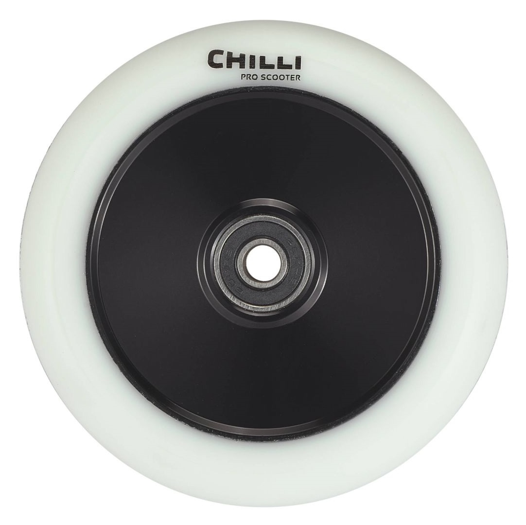 Kolečko na freestyle koloběžku Chilli Archie Cole je odolné 110 mm velké kolečko s tvrdostí 90A. Jedná se o bílé kolečko s plným hliníkovým středem v černé barvě. Součástí kolečka jsou kvalitní ložiska ABEC 9 a vymezovací váleček.