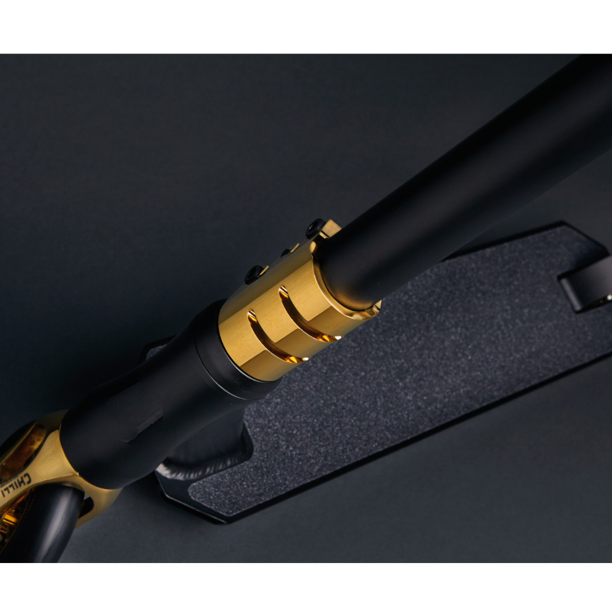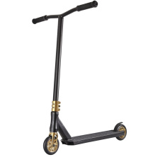 koloběžka má jednodílnou přední vidlici v prémiovém lesklém zlatém provedení a je vyrobena z hliníku 6061 Slim Cut.