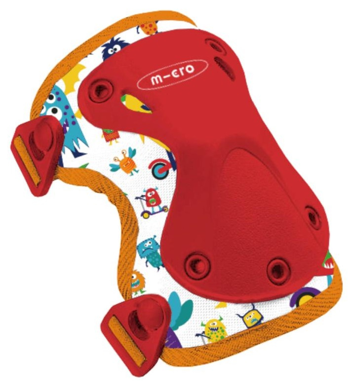 Komfortní a kvalitní dětské chrániče kolen a loktů v červeno-bílo-oranžové kombinaci s motivem příšerek se budou líbit jak chlapcům, tak i holčičkám. chrániče jsou hlavně určené na koloběžky, sada obsahuje pouze chrániče na kolena a lokty. Barvou se jedná o univerzální chrániče pro holky i kluky. chrániče pomáhají zabránit zbytečným nárazům a odření. Pro přesné nastavení velikosti jsou chrániče vybaveny popruhy se suchým zipem. Tyto nastavitelné pásky spolu s textilní prodyšnou elastickou membránou zajistí, že chránič bude dobře držet. Vylepšený systém zaklapnutí (Easy Click-In System) umožňuje rychlejší nasazení chrániče, bez nutnosti nového nastavení suchého zipu. Vnější prémiový tvrzený plast je navržen tak, aby houževnatý a trvanlivý. Je také anatomicky tvarován pro příjemné používání. Komfort při používání, ale i při pádu zaručuje vnitřní silné polstrování.