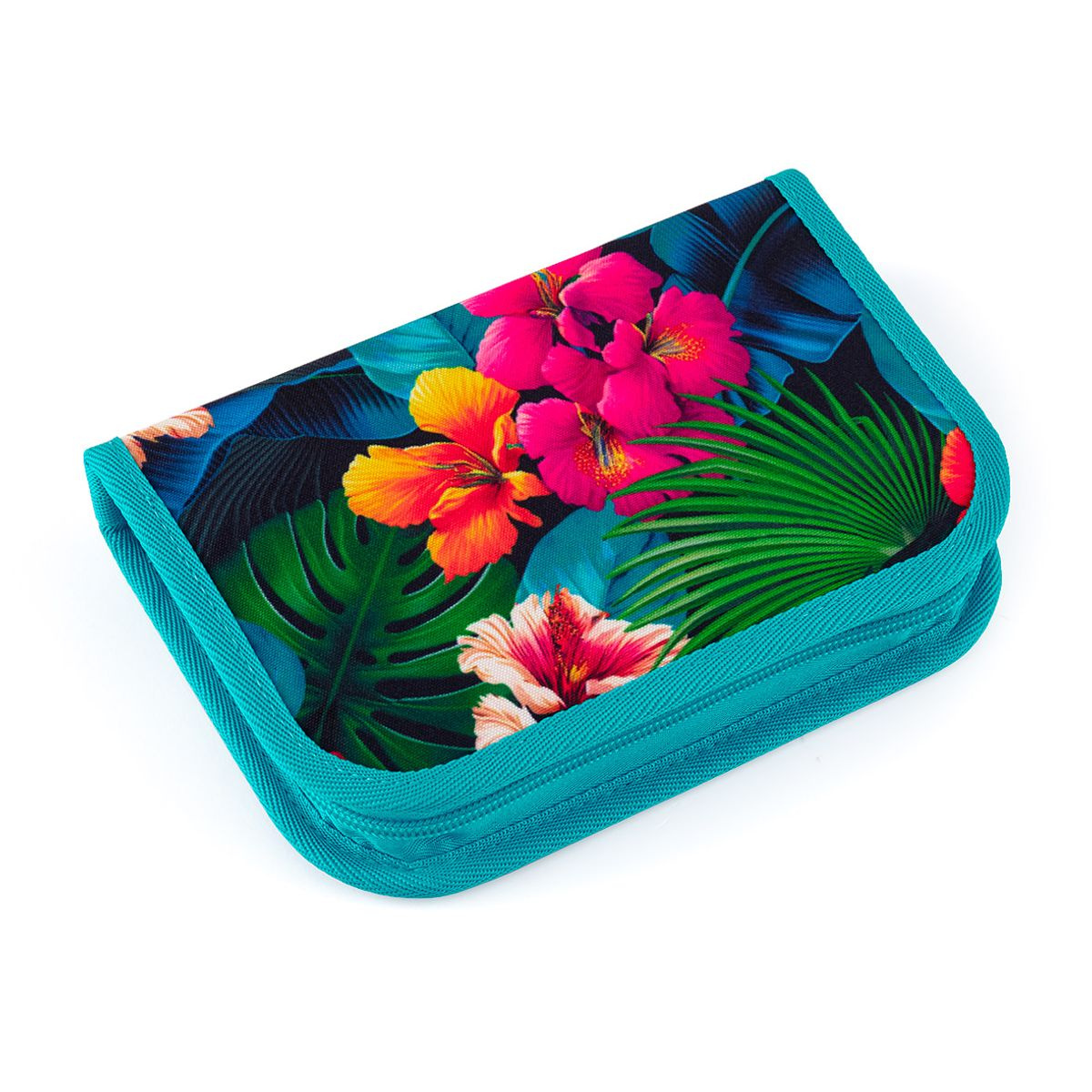 Jednopatrové školní pouzdro se dvěma klopami. Díky gumovým úchytům se do nich vejde celkem dvacetjedna pastelek, tužek a fixek. Tři širší úchyty poslouží na pravítko, kružítko či nůžky. Dva větší na gumu a ořezávátko.