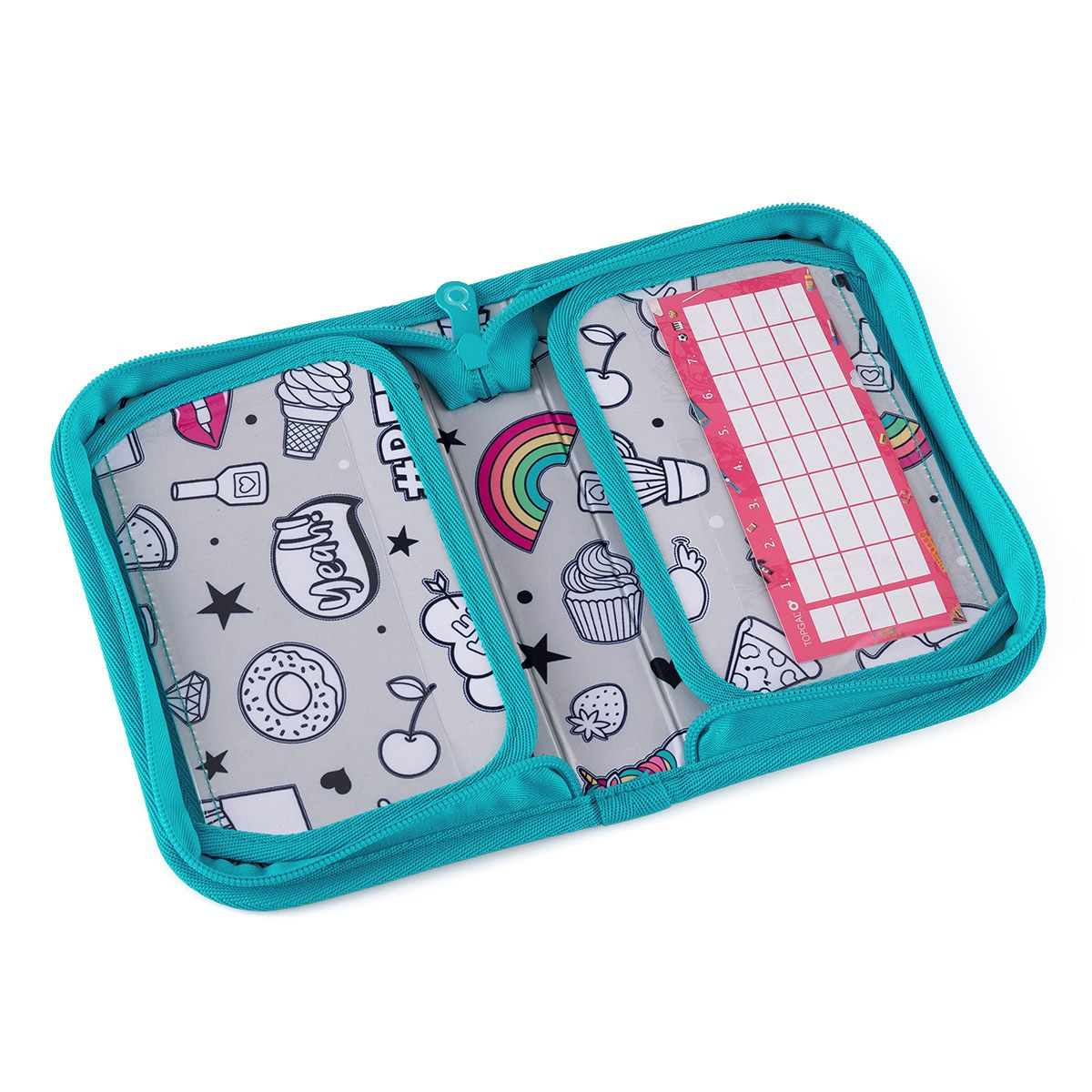 BONUS:Kreslení povoleno! Vnitřní podšívka pouzdra je vyrobena z šedé látky s natištěnými obrázky. Ty si mohou děti vybarvit dle nálady a chuti. Naše malé doporučení - pro vybarvování budou lepší pastelky, fixy by se mohly rozpíjet.