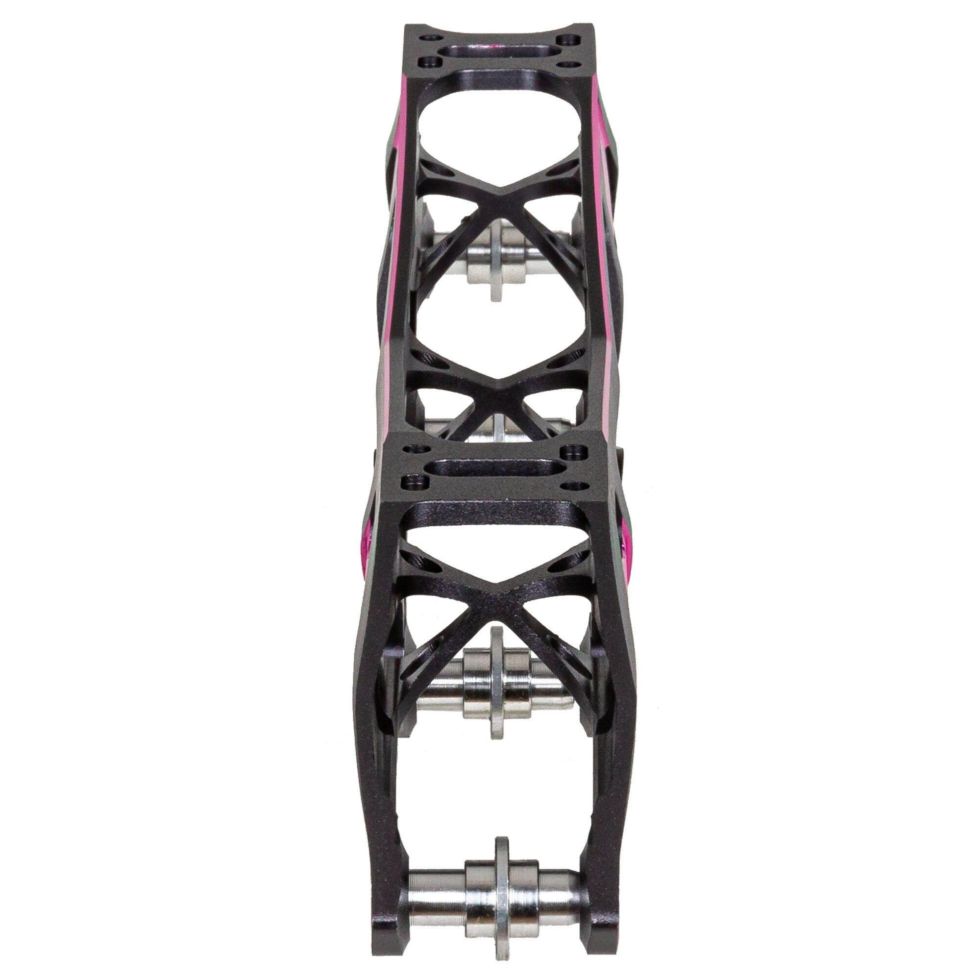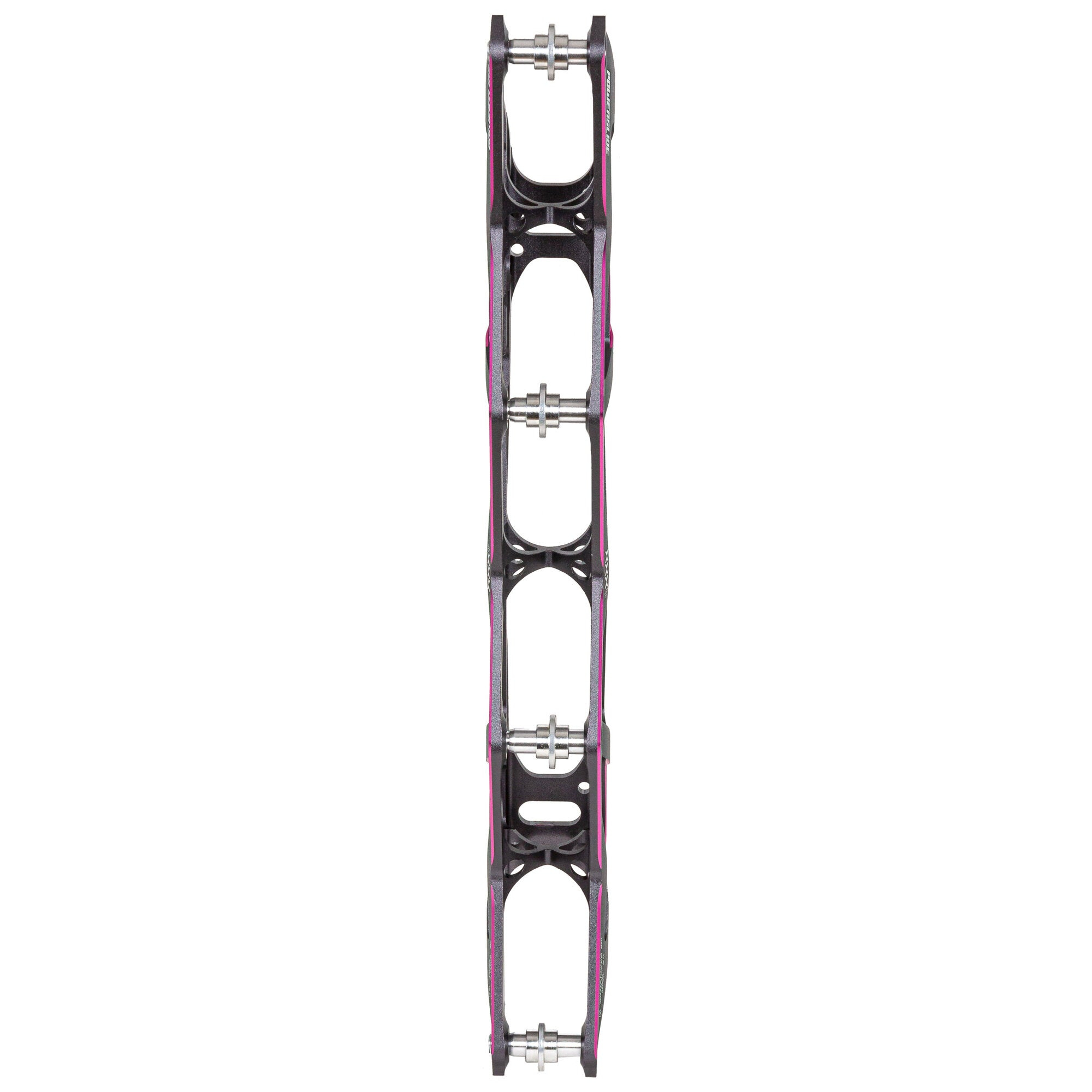 It’s our legendary Triple X frame on a diet, say hello one of the fastest, most capable inline race frames available - it’s the 3X4 110/100 - 12.8 Titanium Pink frame from Powerslide. Collaboration between our engineers, designers, and professional team members Sandrine Tas and Kati Rumpus, without sacrificing performance the 3X4 110/100 frame is now 10% lighter than previous models. The frame is constructed of high-quality aircraft aluminum and CNC machines to perfection. The strong, stiff frame meets the demands of the world’s best inline racers, providing superb power transfer with every stride. Designed around the trusted 195mm mounting system, the 3X4 110/100 - 12.8 Titanium Pink frame from Powerslide is compatible with the Pitch and Stride Control to correct physical malfunctions and for improved comfort and performance. With a length of 12.8 inches / 325mm, these frames are made for speed and can accept a Hi-lo setup with 3x110mm/1x100mm wheels.