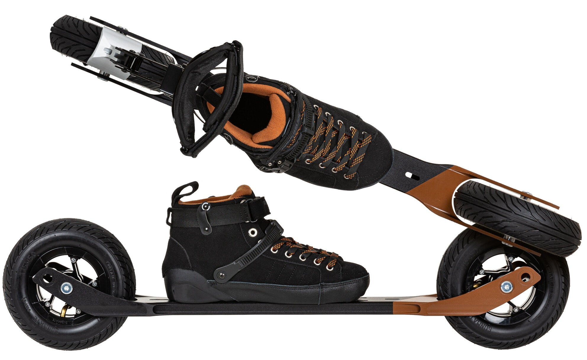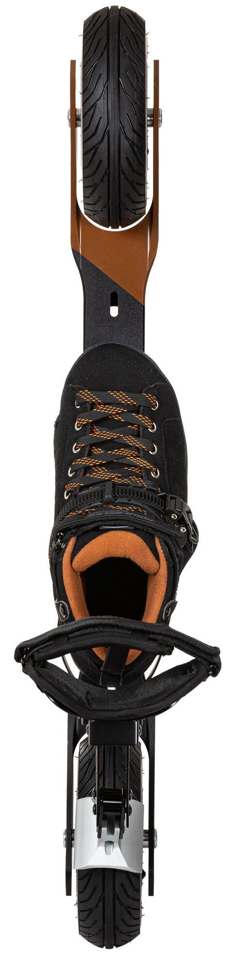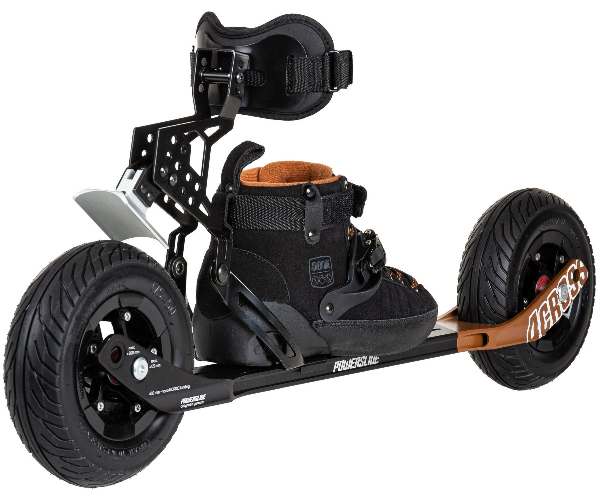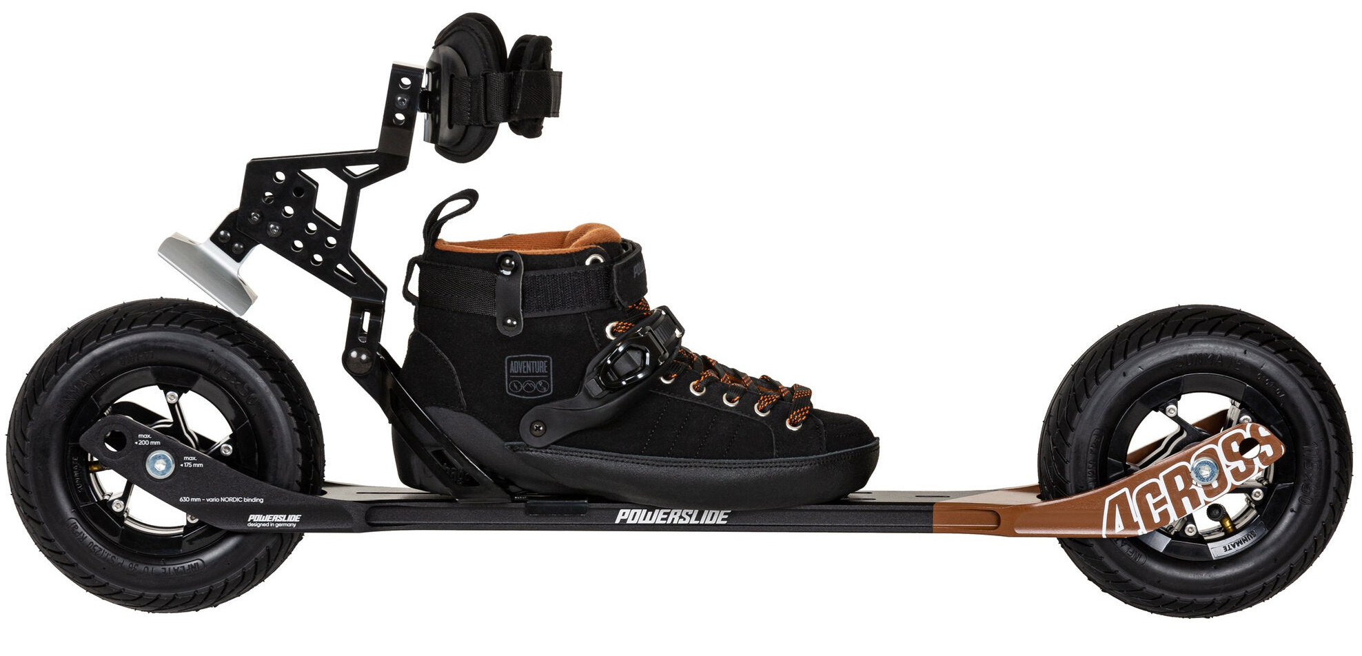Strap into the comfortable and supportive mid-cut boot that’s based on a rigid composite flex shell paired with strong and resistant suede leather. This lightweight off-road SUV inline skate boot gives you excellent support and freedom of movement as well as exceptional comfort and a snug heel lock. The ideal training skate for nordic skiers, the Powerslide 4-Cross 175 offers all the benefits of rugged off-road SUV skates without the extra weight. This innovative off-road inline skate is light and rugged thanks to the newly developed 7" / 175mm tires. With only two of these large, wide tires on each skate, you get all the speed you can handle while still mastering rough terrain with ease. A true masterpiece of its own, the capable and sturdy Powerslide 4-Cross 175 off-road inline skates wouldn’t be possible without its precise and nearly indestructible, extruded, and CNC machined frame made of 6061 aircraft aluminum. The special feature nordic skiers will appreciate is the Vario nordic binding system allowing you to use different types of cross-country ski bindings. For long rides on off-road trails, you can’t beat the 4-Cross 175 SUV off-road inline skate from Powerslide.