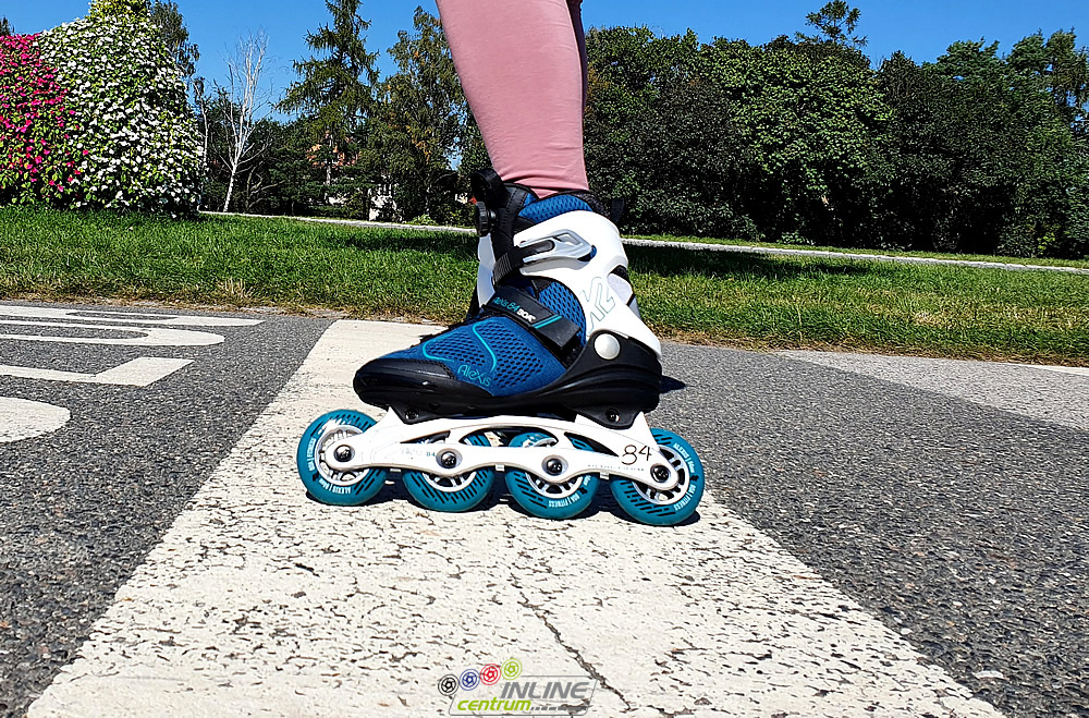 K2 o průměru 84 mm jsou vhodná pro začátečníce i středně pokročilé bruslařky. Svou tvrdostí 80A patří ve své kategorii spíše k měkčím kolečkům, což zajistí dobré tlumení nerovností a dobrou přilnavost. Pro rychlejší jízdu rám pojme i větší kolečka o průměru 90 mm.