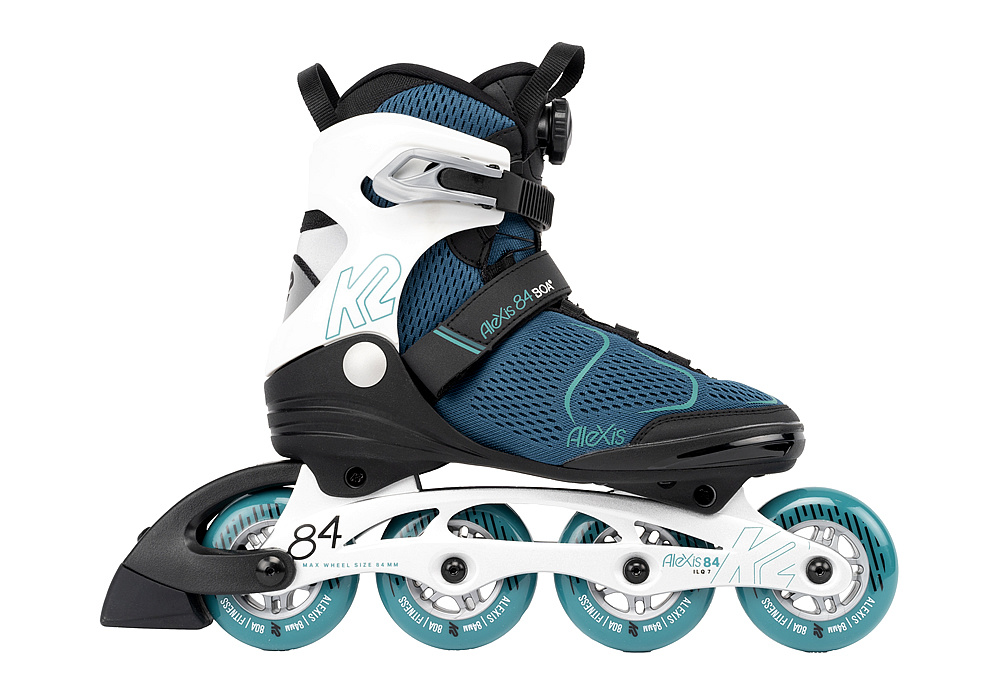 Dámské kolečkové brusle K2 Alexis 84 Boa jsou ideální model pro začátečnice i pokročilejší bruslařky vyžadující stabilní, obratnou a pohodlnou brusli. brusle jsou vybaveny rychloupínacím systémem Boa umožňujícím rychlé utažení bruslí otáčením kolečka a stahováním lanka, které je použito namísto tkaničky. Alexis 84 Boa jsou osazeny lehkým a pevným hliníkovým rámem s kolečky o průměru 84 mm. Do rámu se dají nasadit kolečka o maximální velikosti 90 mm. Bota s boční výztuhou a podporou klenby je vyrobena z paměťového materiálu, který se dotváří podle tvaru nohy.