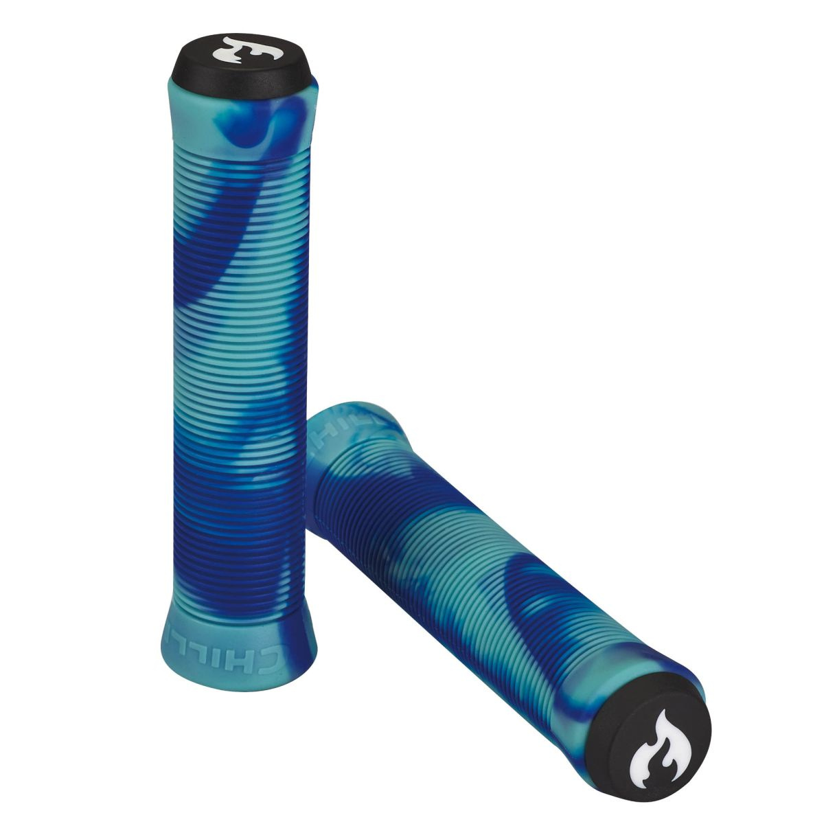 Gripy Chilli Standard 2.0 o délce 14 cm v kombinaci modré a tyrkysové jsou vyrobeny z měkčené gumy, která poskytuje jezdcům pevný a pohodlný úchop při každém triku.
