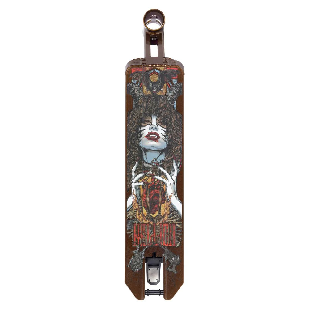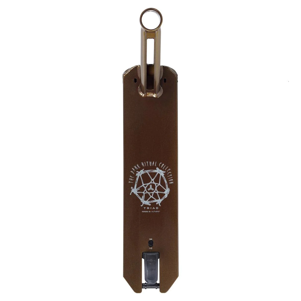 Lehká, pevná deska. Výhodou teto desky je materiál. Je vyrobená z 7000 série hliníku. Takže deska je odolnější. Doporučujeme všem náročnějším park jezdcům. Novinka této řady je krk desky. Ten je z jednoho kusu. Díky tomu deska je pevnější. Fender OFF brzda je skvělá kombinace pružné a nepružné (pevné) brzdy. Můžete se rozhodnout jeslti chcete jezdit Flex fender nebo fender. Tento systém má pouze Triad.
