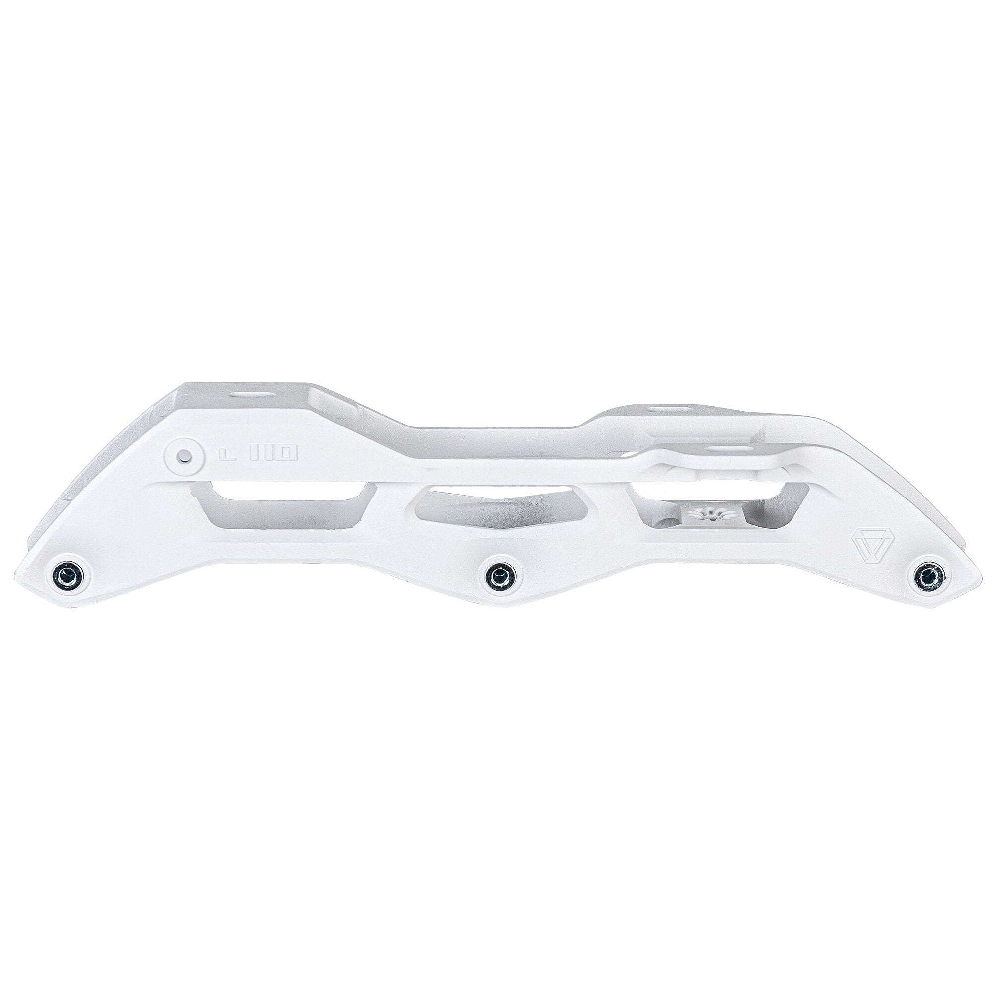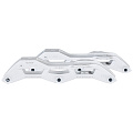 The Powerslide Elite Syncro 110 - 270 TRI White Triskate frame is the masterpiece a lot of skaters were waiting for. With a length of 270mm and able to accept 110mm wheels, Powerslide’s Elite Syncro 110 frame is constructed of lightweight and rigid A356 aluminum, ideal to stand up to the forces longer frames put on the frame. The unique design allows the frame to be built around the wheels for superior stiffness and responsiveness. As the name suggests this fast, precise, and safe Triskate frame features Syncro, an amazing new brake system that enables skaters to brake effectively while still having all wheels on the ground, guaranteeing better stability and safer skating. As an added bonus all three wheels stop at the same time avoiding flat spots and extending wheel life. The frame has a wide range of modern features, including the TRINITY 3-point mounting system. By connecting to the boot with three points of contact, the famous TRINITY system creates a channel that brings the wheels close to the foot, giving you a low center of gravity. The benefits of the TRINITY system include improved control, balance, and power transfer in every stride. The TRINITY system also reduces vibrations and features the X-slot mounting technology which allows you to customize your frame position in all directions. Frame is available in White or Black colors. Fast, innovative, and safe - it’s the Elite Syncro 110 - 270 TRI White Triskate frame from Powerslide.