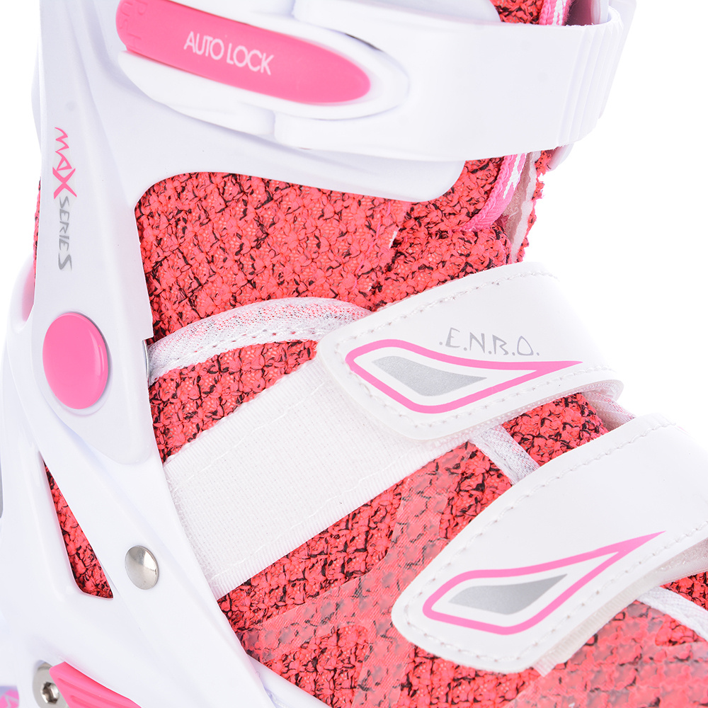 Na jazyku dívčích nastavitelných bruslí Tempish ENBO GIRL DUO se nachází poutko pro pohodlnější obouvání. Pro větší bezpečnost jsou na zadní části brusli reflexní prvky zvyšující jejich viditelnost za tmy a při zhoršené viditelnosti.