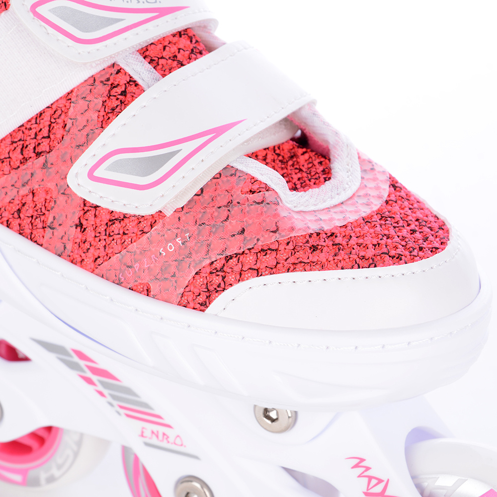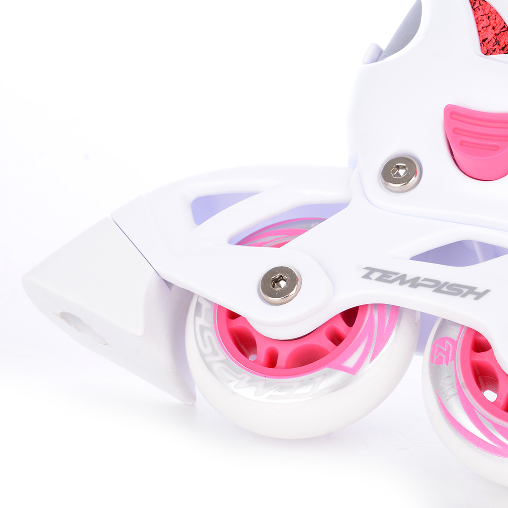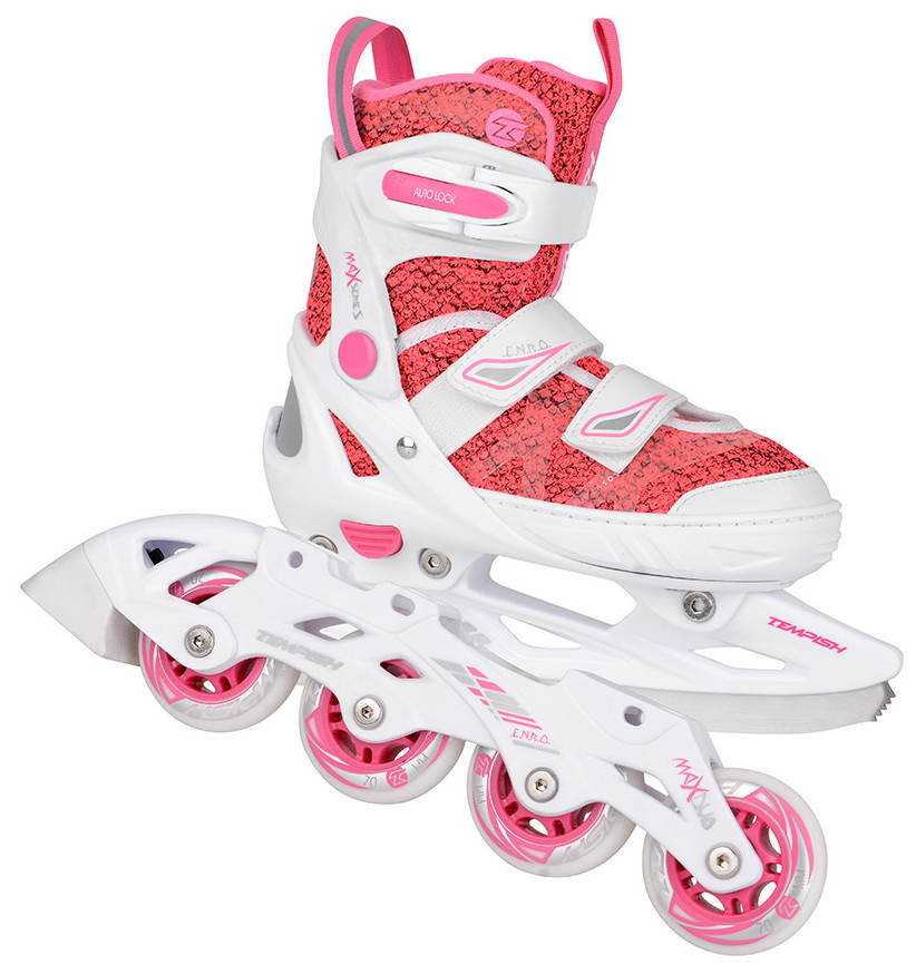 Dívčí roztahovací brusle Tempish ENBO DUO disponují speciální duální konstrukcí pro celoroční rekreační bruslení. Konstrukční systém umožňuje záměnu zimních bruslí za podvozek s kolečky. Jednoduchým povolením tří šroubů přeměníte zimní brusle na kolečkové inline brusle a naopak.