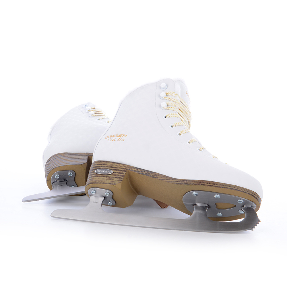 Krasobrusle má pevný skelet s anatomickým tvarováním v oblasti kotníku. Zajímavý design a jemný kožíšek dělají z modelu Giulia velmi žádané zboží pro všechny náročné bruslařky, které hledají pevnou oporu kotníků a zároveň skvělé pohodlí.
