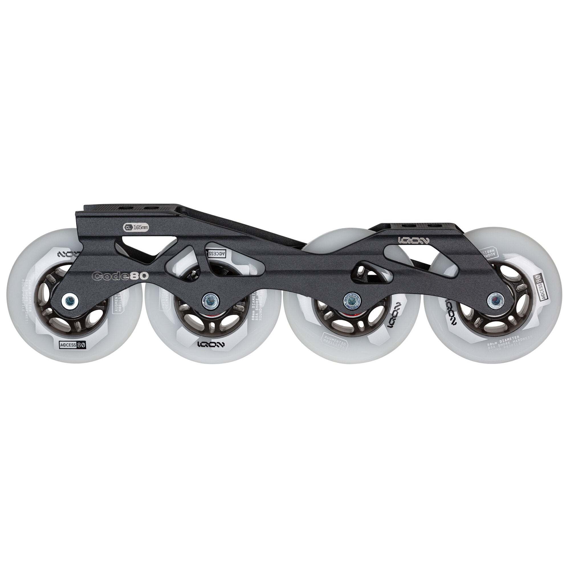 Complementing the high-performance frame and bearings are the Iqon Access wheels. These wheels, measuring 80mm and boasting an 85A hardness rating, are crafted from ultra-reactive polyurethane. This combination of size and hardness ensures exceptional responsiveness and excellent grip on various surfaces, allowing you to take on any urban terrain with confidence.