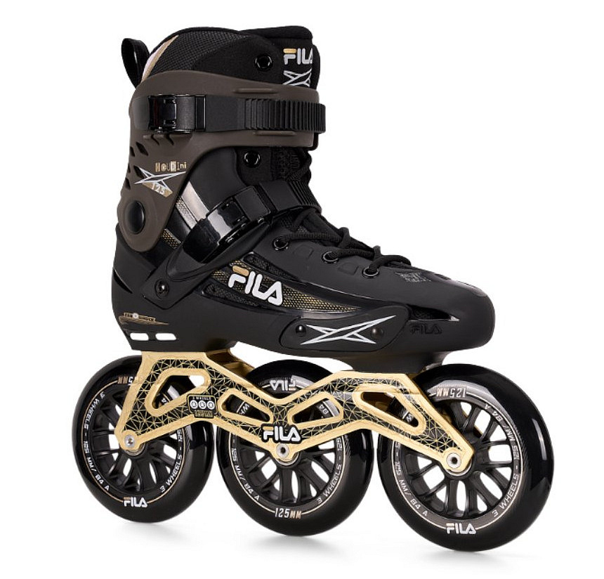 Kolečkové brusle Fila Houdini 125 Black/Gold jsou výkonné fitness inline brusle s hardboot konstrukcí a tříkolečkovým setupem pro rychlou jízdu ve městě.
