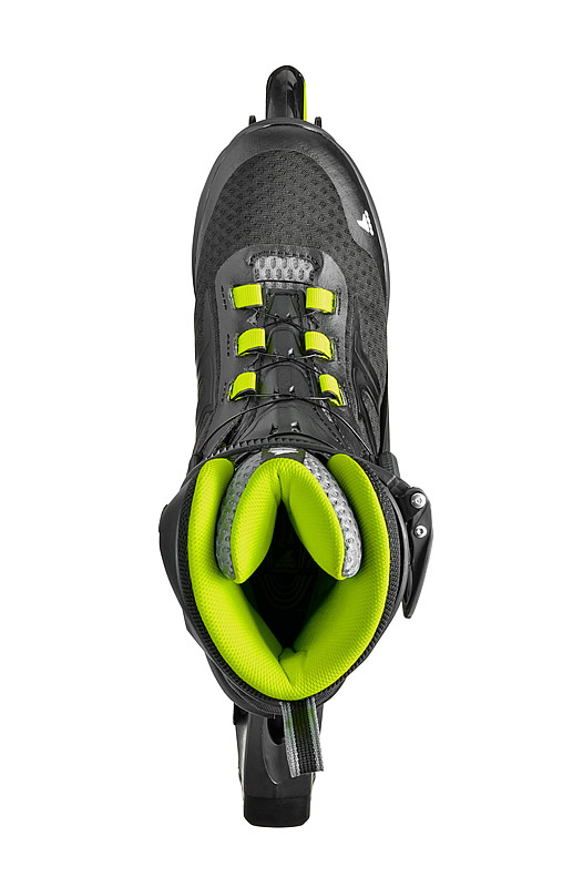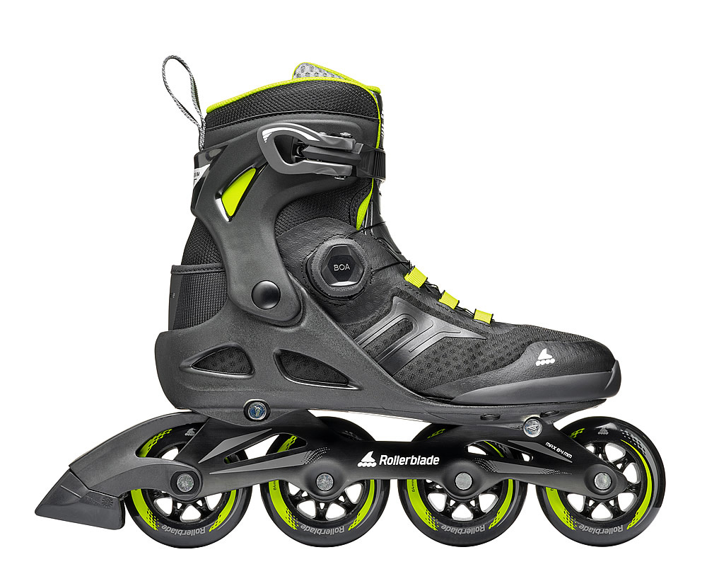 Fitness inline brusle Rollerblade Macroblade 84 Boa jsou určeny na středně dlouhé projížďky. brusle jsou vybaveny rychloupínacím systémem Boa umožňujícím rychlé utažení bruslí otáčením kolečka a stahováním lanka, které je použito namísto tkaničky. Skvělá botička a dobré polstrování umožňuje pohodlné usazení nohy po celou dobu bruslení. Vnitřní botička Performance liner je navržena pro pohodlí nohy s ohledem na pohyb při bruslení. Výplň s pamětí zaručuje dokonalé přizpůsobení tvaru jakékoliv nohy a zabraňuje otlačení chodidel. Hliníkový rám je pevný, odolný, stabilní a v tvrzené verzi má zvýšenou nosnost a tuhost v torzi = lepší přenos energie, žádné ztráty z kroucení. Kolečky 84 mm/84A točí ložiska SG7.
