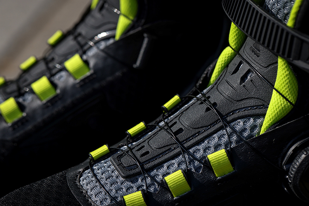 Skelet z lehkého kompozitu zajistí dokonalou stabilitu, oporu a vedení nohy. Pletený svršek podporuje cirkulaci vzduchu a odvod potu a bezešvá vnitřní botička s anatomickou stélkou se výborně přizpůsobí tvaru nohy. Na výrobu vnitřní výstelky byl použit ultra lehký materiál, který poskytuje excelentní komfort při zachování ideálního přenosu energie do odrazu. Pro snadné nazouvání a vyzouvání byla na vnitřek botičky použita Lycra, výstelka je zároveň vyrobena z antibakteriálního materiálu pro dlouhou životnost a stálý komfort.