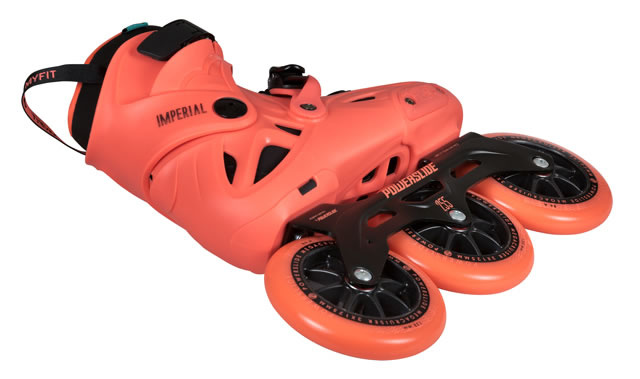 inline skates Powerslide Imperial Megacruiser. Solid and durable skelet shoe is mounted with aluminium frame, high quality bearings ABEC 9 and three 125mm wheels Powerslide Megacruiser 88A allowing fast ride.