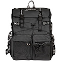 Inline skates are mounted securely on the outside, keeping the main storage area clean and accessible. Inside, there are different compartments to organize skate tools, bearings, and accessories, as well as a longer removable padded internal bag for carrying camera equipment, this time designed to fit larger cameras than the HVX. We also added a strap so you can carry it individually if needed, and we’ve included a fisheye-sized pouch so you can transport it with maximum protection.
