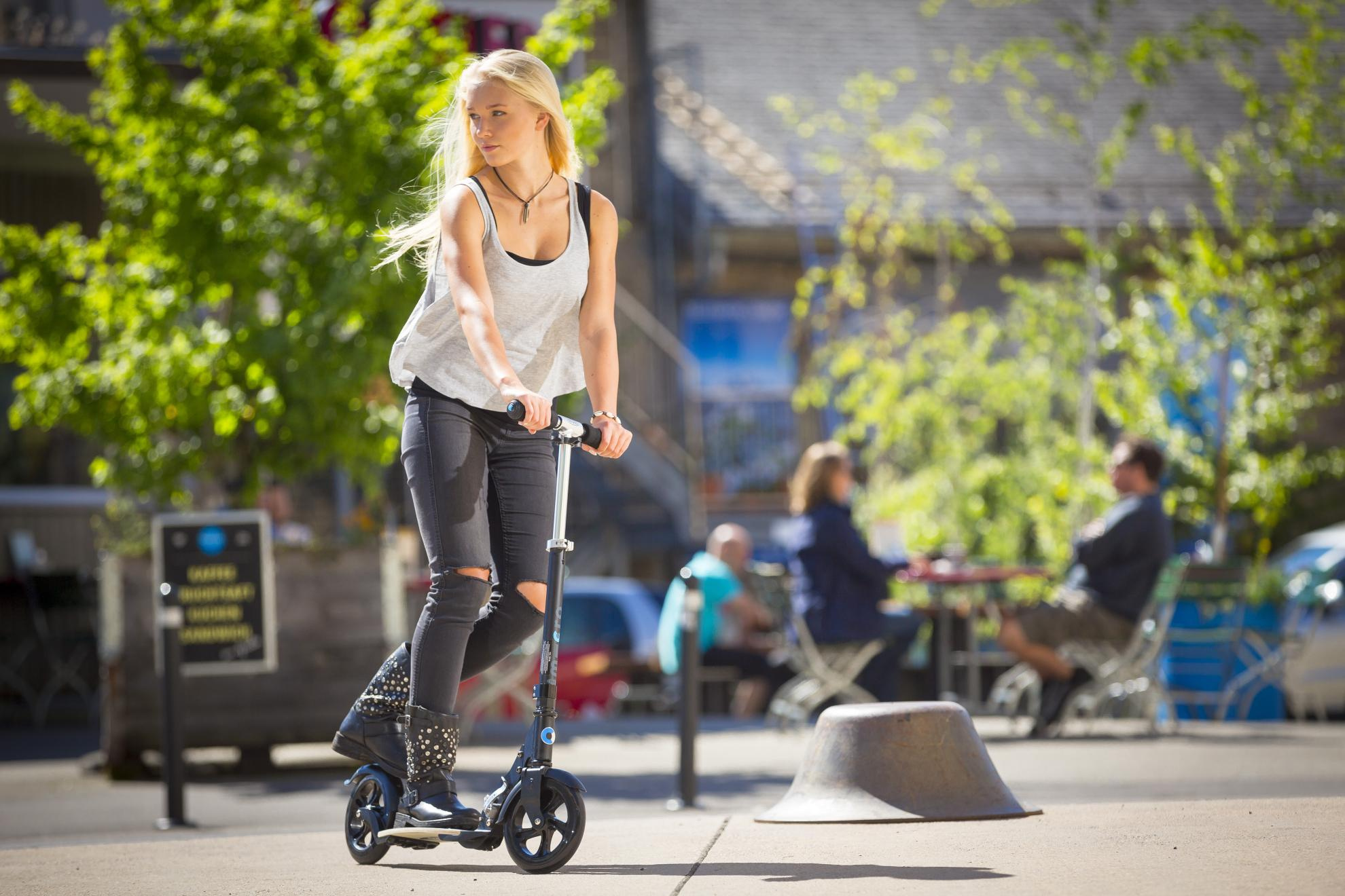 Hlavními přednostmi této koloběžky je pružná patentovaná nášlapná deska z kompozitních materiálů, která v kombinaci s pevnými kolečky o velikosti 200 mm vytváří velice pohodlnou a rychlou skládací koloběžku. Tato deska eliminuje vibrace a při odrazu se mírně prohýbá. Díky této technologii je koloběžka uzpůsobená jak na jízdu po stezkách, tak i do města.