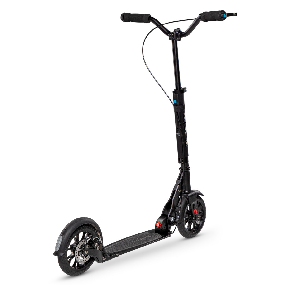 Černá koloběžka Micro Metropolitan je navržena ve Švýcarsku a je zárukou kvality a dlouhé životnosti.