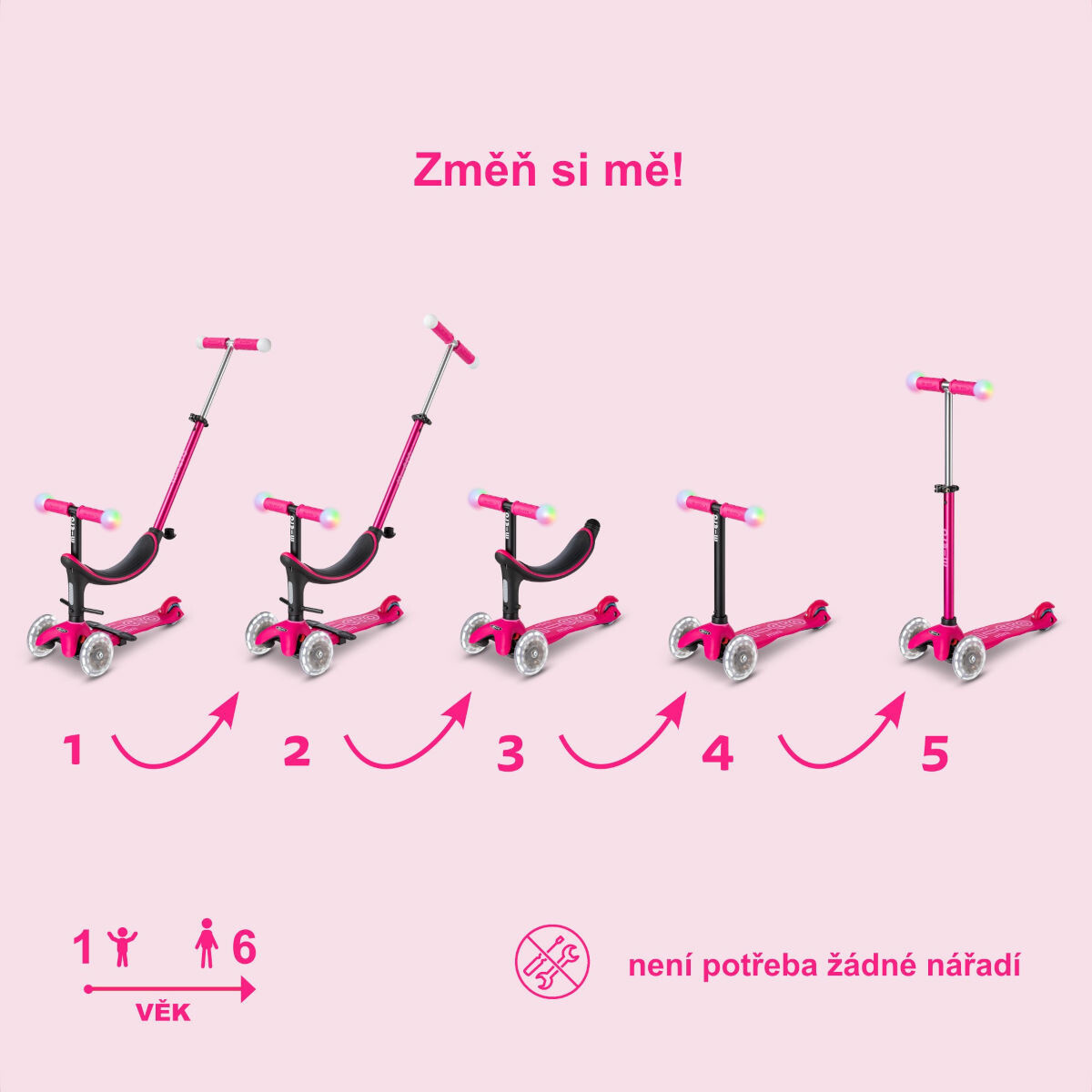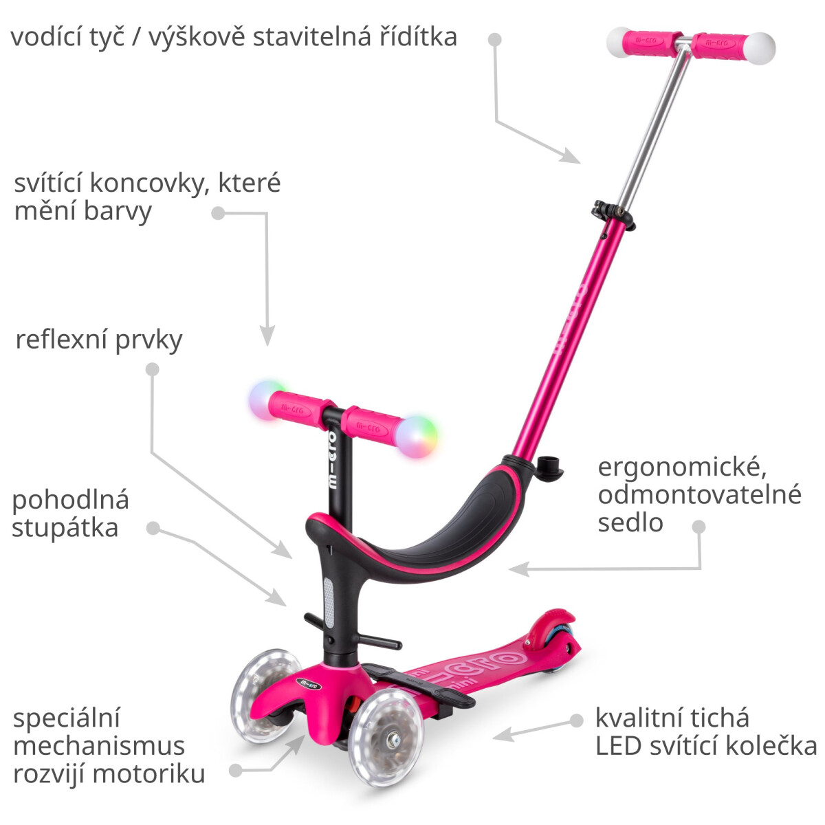 Výhody koloběžky Micro Mini2Grow DeLuxe Magic LED