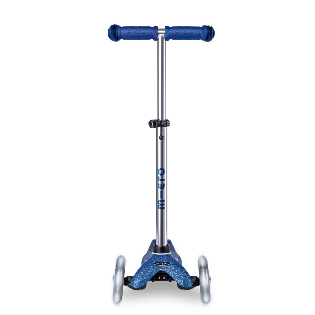 kolečka koloběžky Micro Mini jsou vyrobena z měkkého PU, díky čemuž mají dobrou přilnavost a výborně tlumí vibrace vyvolané jízdou. koloběžka má 3 kolečka z důvodu dobré stability a ergonomie při odrazu. Přední dvě kolečka jsou větší (120 mm) a to z důvodu lepšího překonávání nerovností. Třpytivá svítící LED kolečka jsou osazena LED světly, která nepotřebují baterii a která začnou svítit ve chvíli, kdy se koloběžka rozjede. Zadní kolečko je menší (80 mm) a je umístěno uprostřed tak, aby nepřekáželo noze i při velkém odrazu.