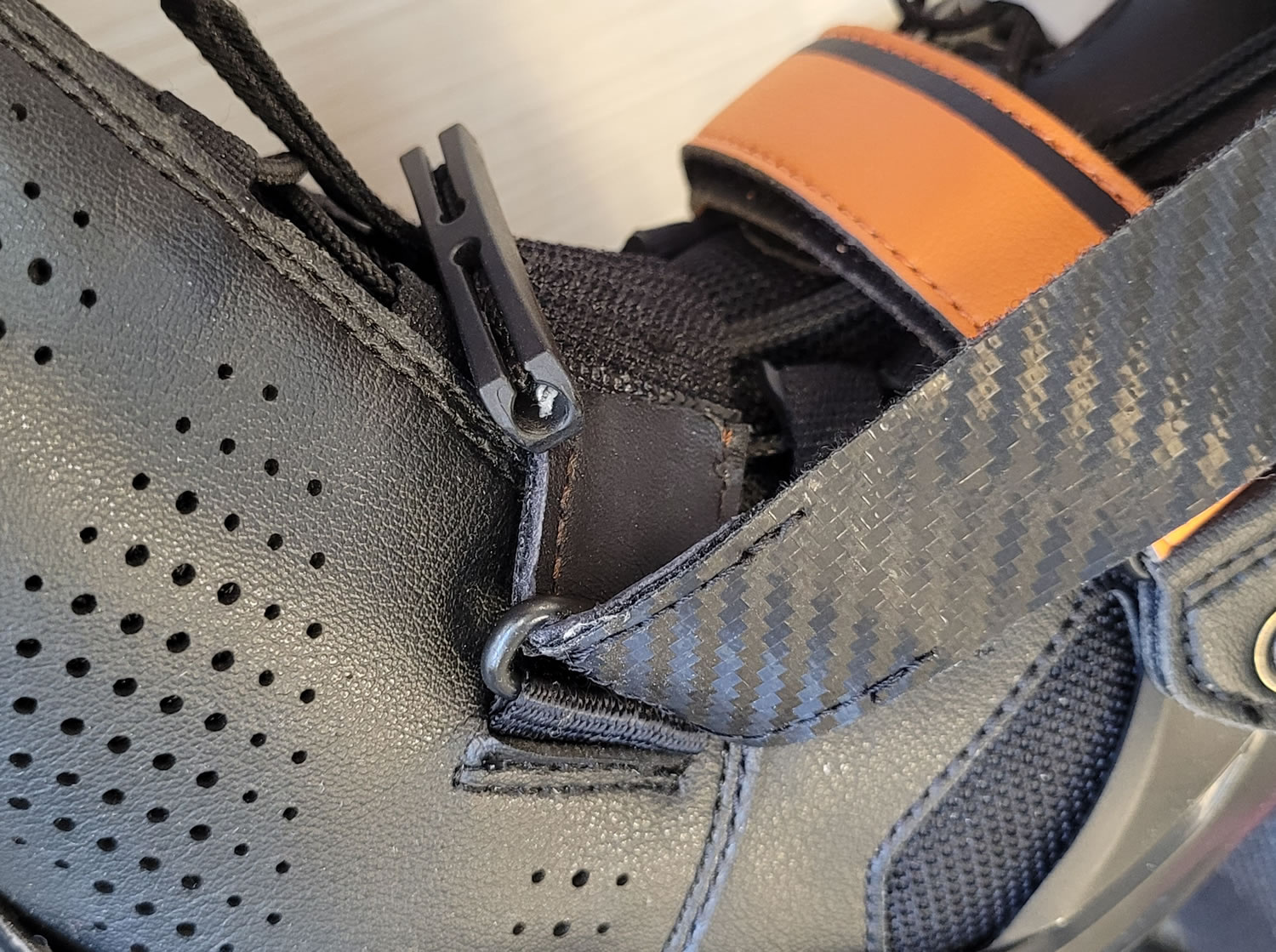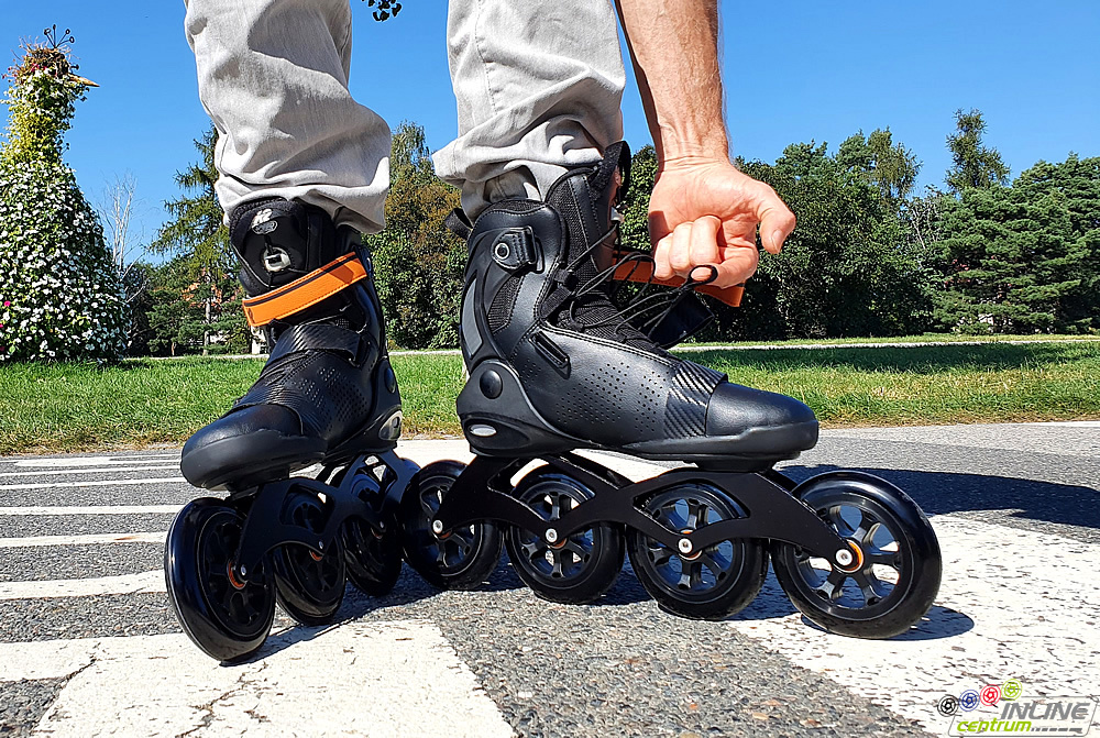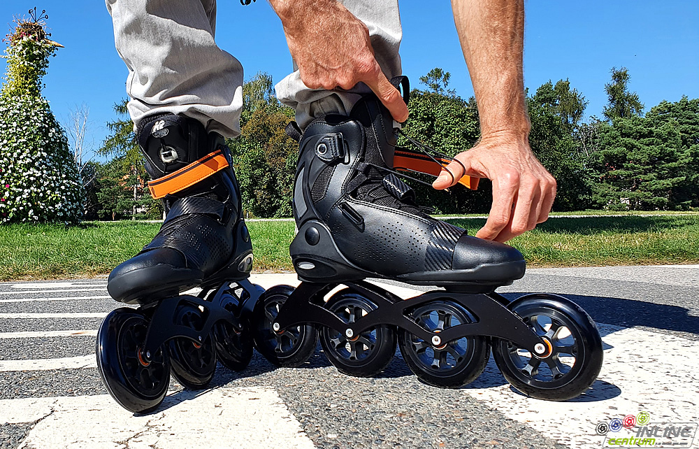 Je zajištěno rychloutahovacím systémem Speed Lace, který umožní pohodlné, rovnoměrné a spolehlivé utažení nohy v brusli jedním zatažením. Po zatažení se tkanička sama zajistí a k povolení dojde jednoduchým stisknutím samozajišťovacího zámku na jazyku. Horní přezka je na suchý zip a cuff má velmi měkký flex, což umožňuje bruslaři sportovní postoj v předklonu a dlouhý odraz. Nárt je zpevněn klasickým páskem na suchý zip. tkaničky jsou kryté légou na suchý zip. Videorecenze rychlozavazování K2 Speed Lace.