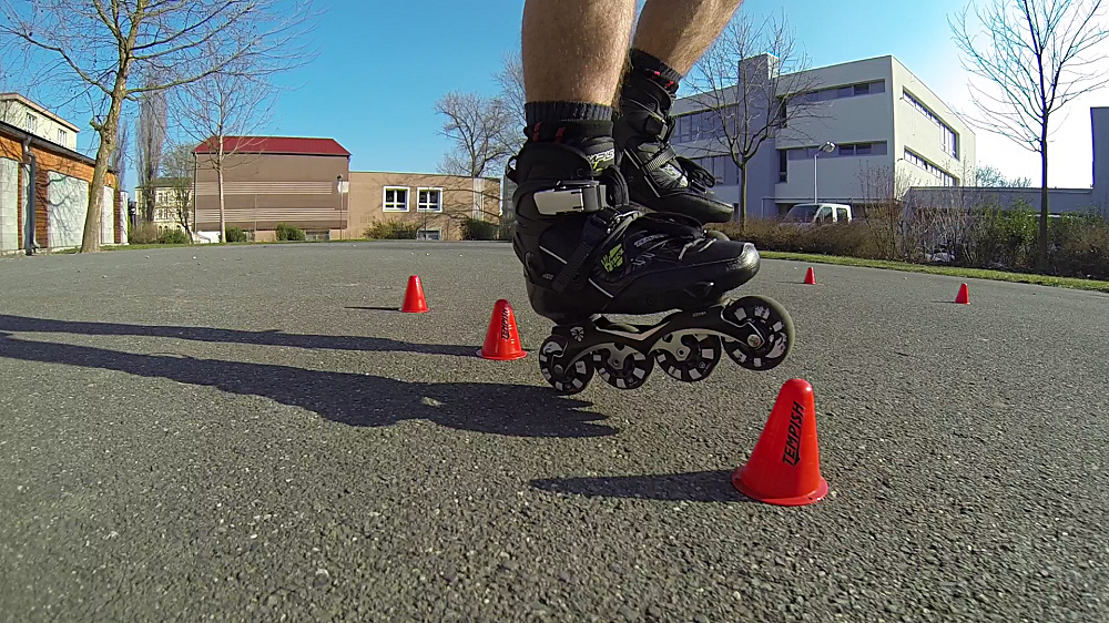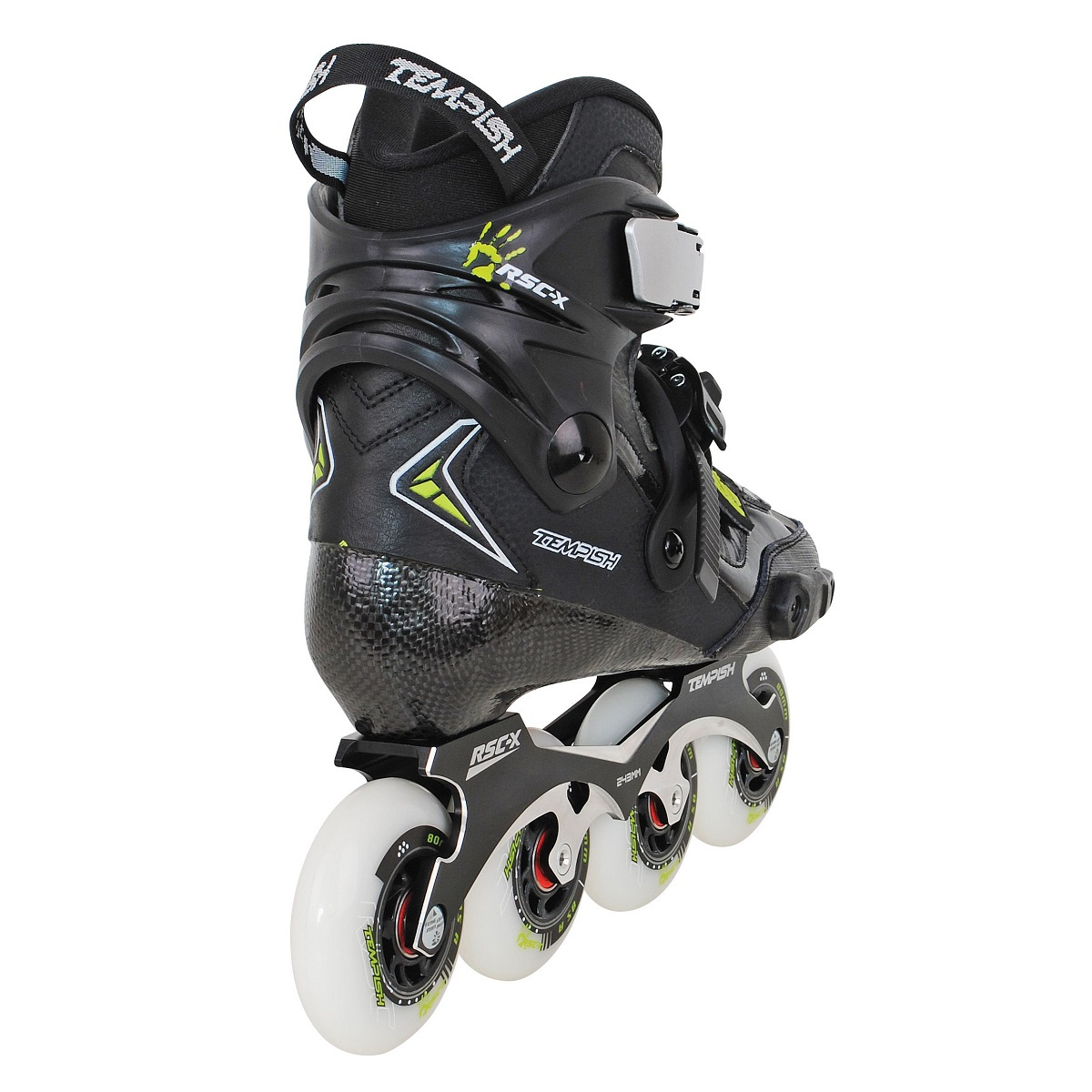 Celá konstrukce odolných freestylových bruslí Tempish RSC-X je řešena tak, aby bota byla co možná nejužší a při bruslení bylo snazší provádět potřebné pohyby obou bruslí bezprostředně u sebe.