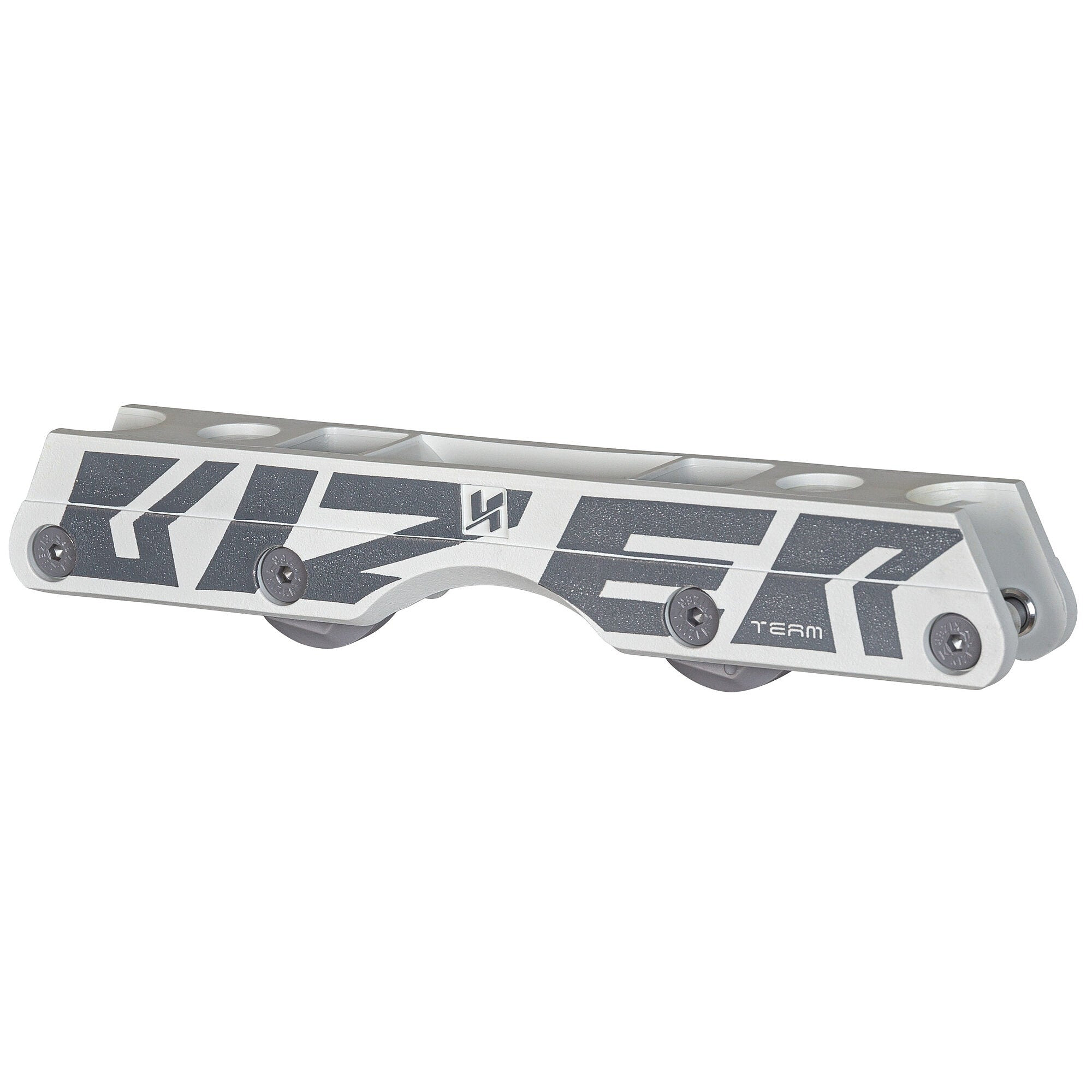 The KIZER Team Fluid IV White/Grey SL stands out as one of the premier anti-rocker frames in the aggressive skating market. Crafted for ultimate performance in grinds, this frame is both lightweight and incredibly strong. Its Fluid material ensures seamless slides across various surfaces, from rails and coping to marble and rough concrete. The innovative groove shape enhances control, directing directly to the anti-rocker wheel for precise lock-on and swift, smooth slides. Designed for versatility, the frame accommodates up to 60mm wheels on the outside and standard anti-rocker wheels on the inside, delivering maximum speed and optimal height for improved balance and stability. Available in three different lengths, the KIZER Fluid IV fits various foot sizes. It includes double steel axles and aluminum frame spacers for enhanced wheel performance and longevity. Trusted by aggressive skaters for years, the KIZER Team Fluid IV White/Grey SL elevates an already exceptional range of frames. Experience the difference with the KIZER Team Fluid IV as it comes additional with 8 Wicked ABEC 7 bearings and 4 Kizer Sliders in 47mm for the perfect antirocker setup out of the box.