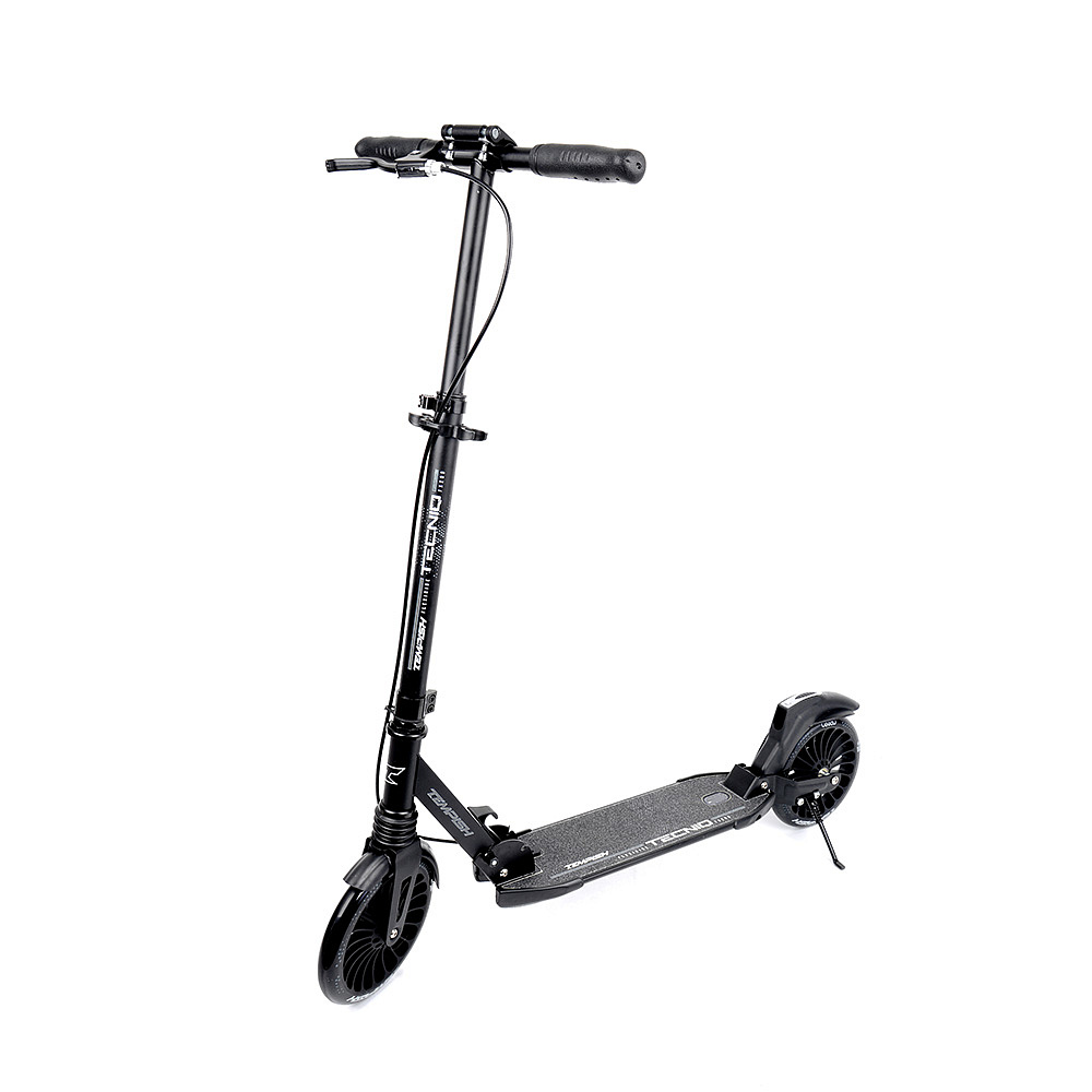 Koloběžka je osazena PU kolečky o průměru 200 mm a šířce 30 mm – ty výborně zvládají nerovnosti a poskytují tichý, rychlý chod s dlouhou životností. Nechybí ani praktický sklápěcí stojánek pro pohodlné odstavení koloběžky.