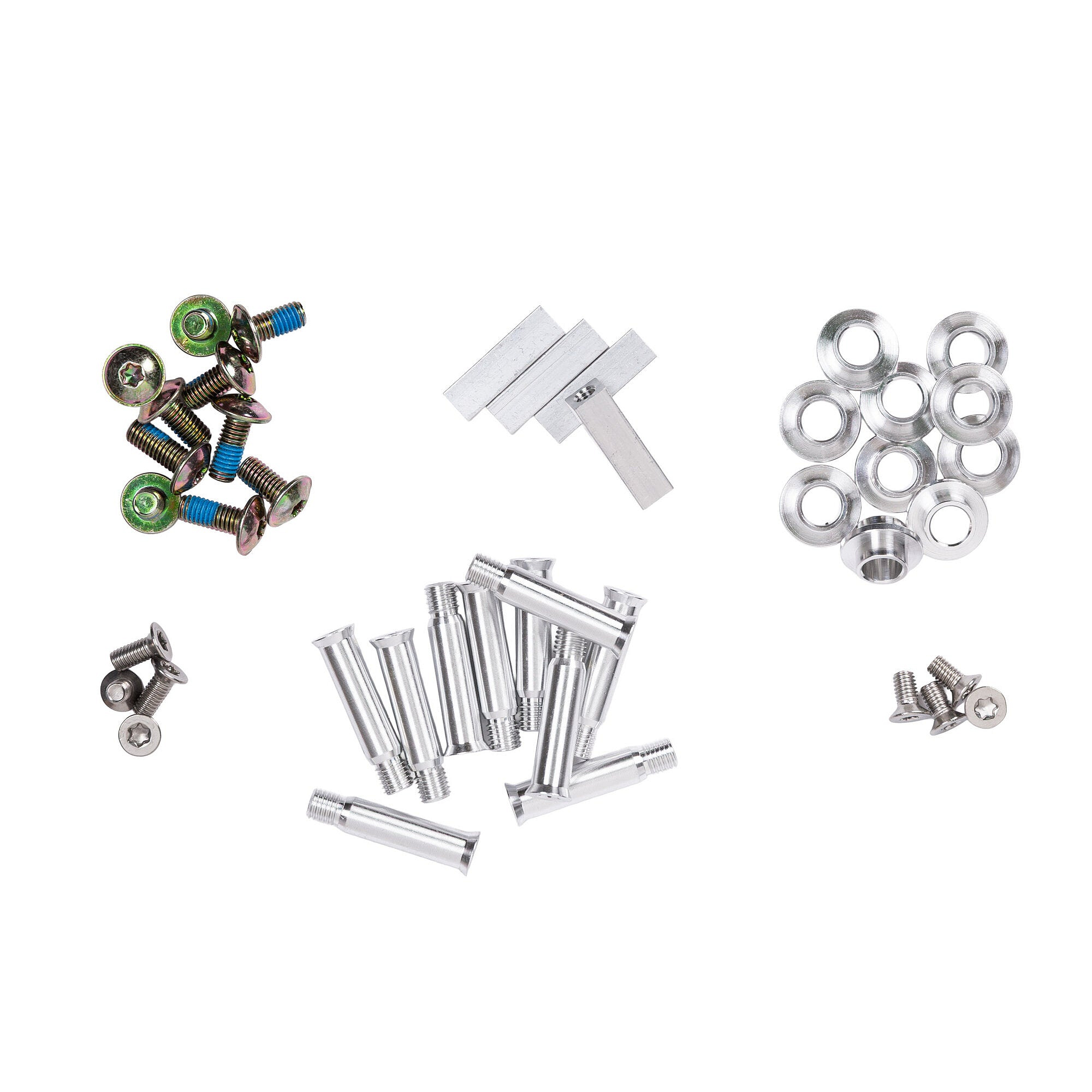 AL spacer,6 washers 1mm thick,6 screws 10mm,6 screws 12mm,6 screws 15mm,1 IQON tool Torx T25