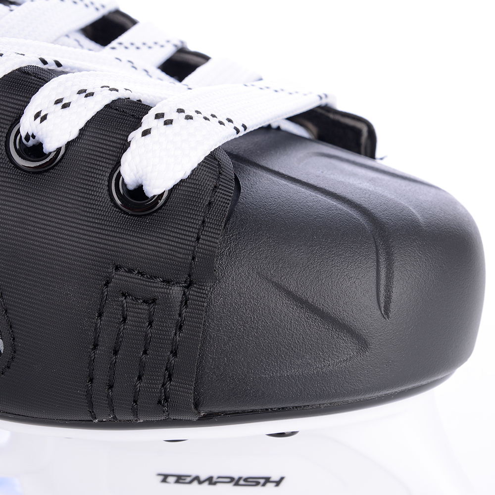 Bota má anatomicky tvarovaný kotník, chráněný plastovou výztuhou proti úderům od puku nebo hokejových holí. Vnější materiál je speciální resistentní PVC (Edmont-Flex) odolné vůči absorpci vody a zachovávající si houževnatost do teploty -25°C, výborně kopírující skelet boty. Technický, fine-mikro nylon s potiskem. Hokejový komplet je osazen odlehčenou bruslí Tempish AIR.