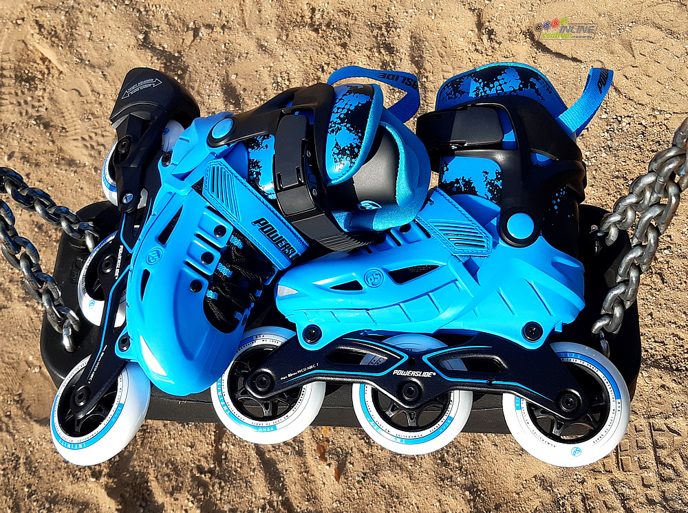 You can easily put skates on thanks to technology Easy Slip In, which comes from many years of experience of company Powerslide. When you put them on, there is great large handle on back part of skate. Basic tightening of skates is ensured with popular classic lacing with solid eyes, then you tighten leg with long velcro and finish with solid buckle with fuse preventing from opening.