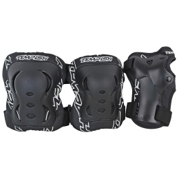 Universální sada chráničů na kolena, lokty a zápěstí Tempish FID 3. Flexibilní konstrukce chrániče a jeho plastové výztuhy velmi pohodlně "padne" na chráněné části těla. Jsou velmi lehké a minimálně omezují v pohybu. Vrchní materiál je odolný proti otěru. Vnitřní materiál výborně odvádí pot a vlhkost z těla. Elastický materiál se přizpůsobuje dle pohybu bruslaře.