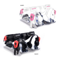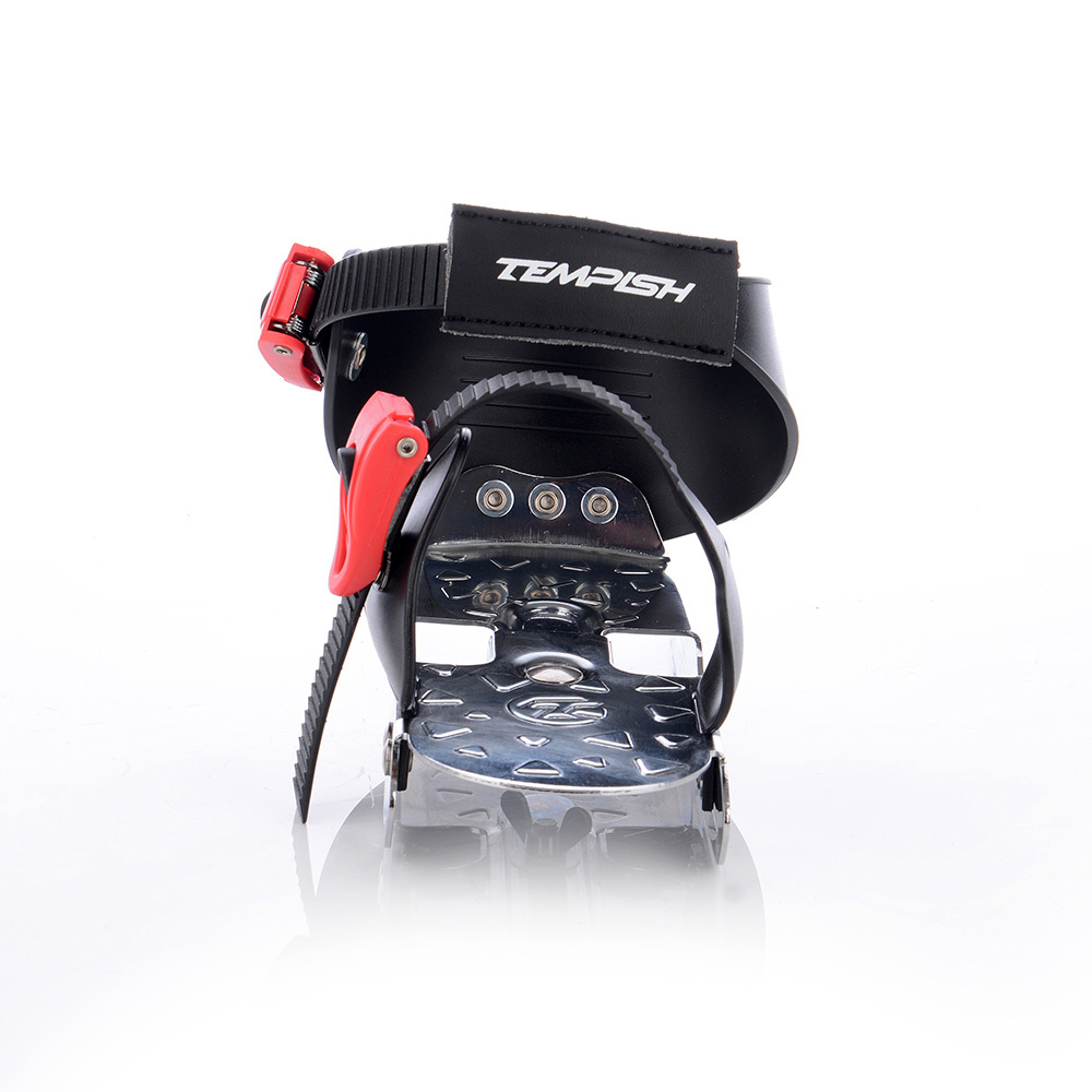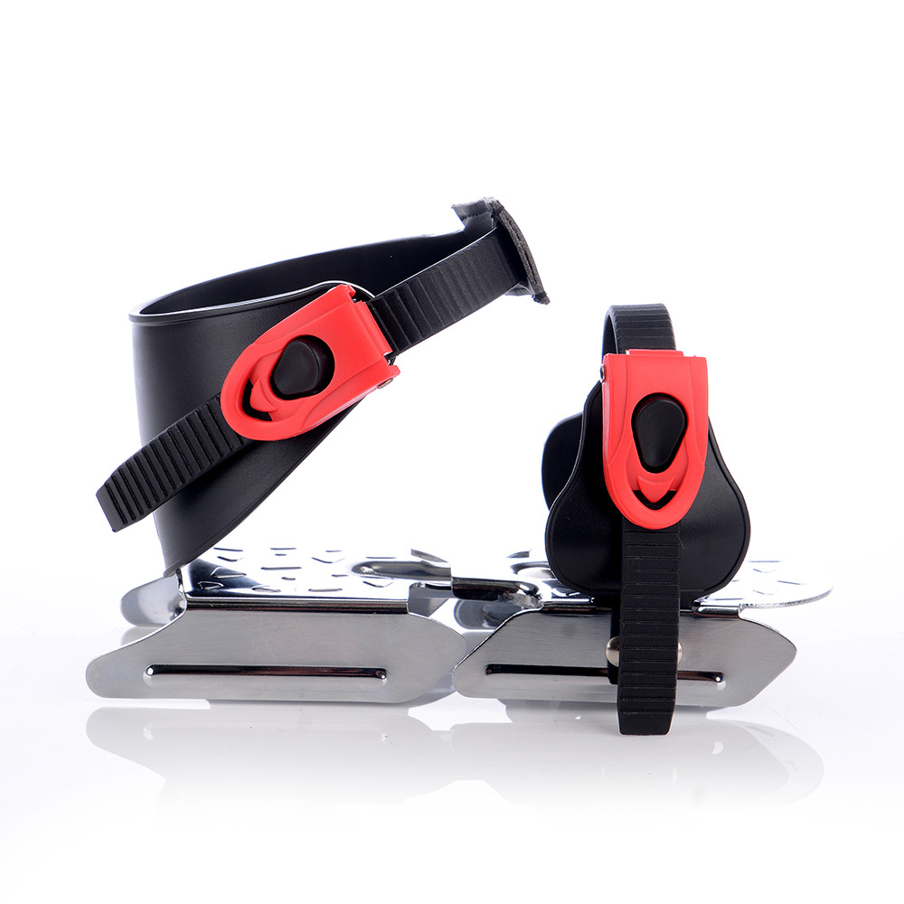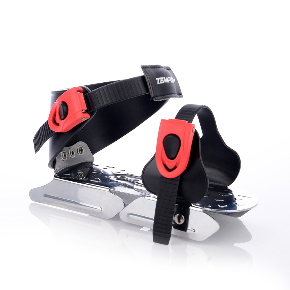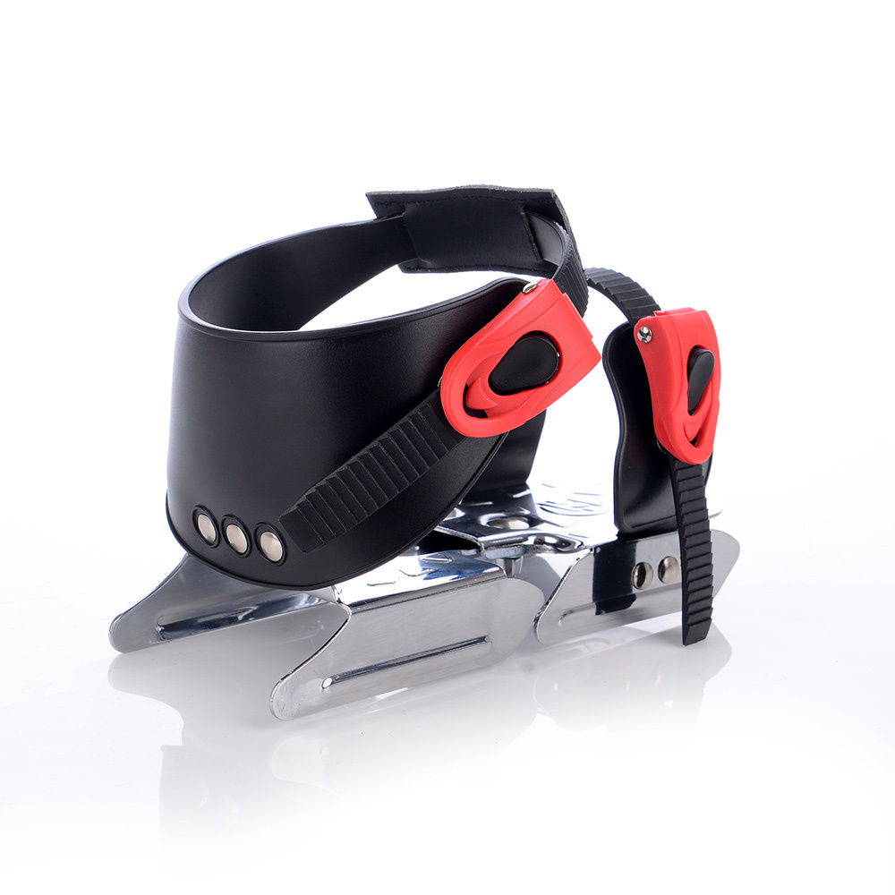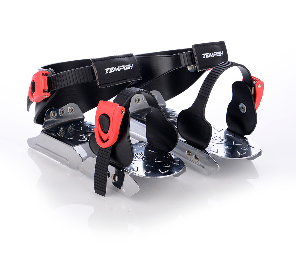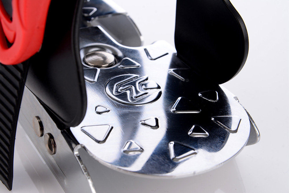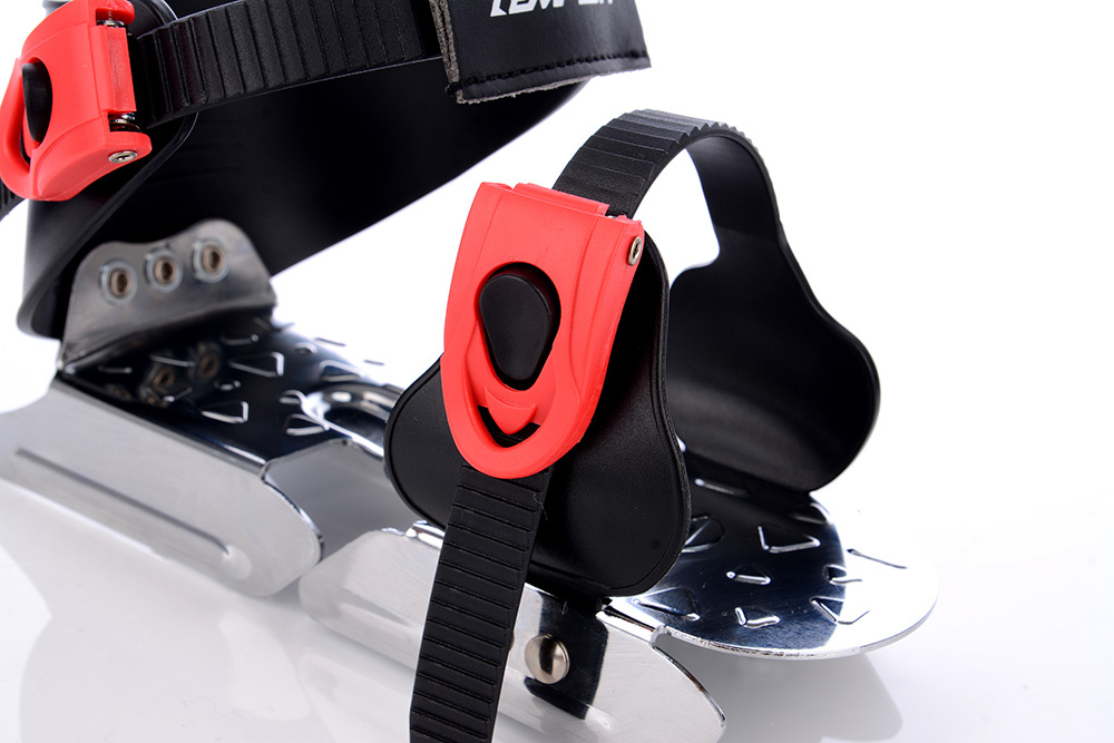 - Univerzální nastavení velikosti – jednoduchý systém úpravy délky brusliček pomocí křídlové matice ve spodní části. Uvolněním matice a vysunutím přední části lze brusličky přizpůsobit aktuální velikosti obuvi a následně opět bezpečně zafixovat.