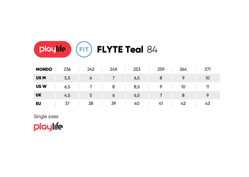 Konstrukce Flyte Teal 84 je vyrobena z lehkého a podpůrného kompozitního materiálu a odpovídající manžetou. Flexibilní horní část boty se perfektně přizpůsobí vaší noze, zatímco vyztužená síťovina dále zlepšuje oporu.