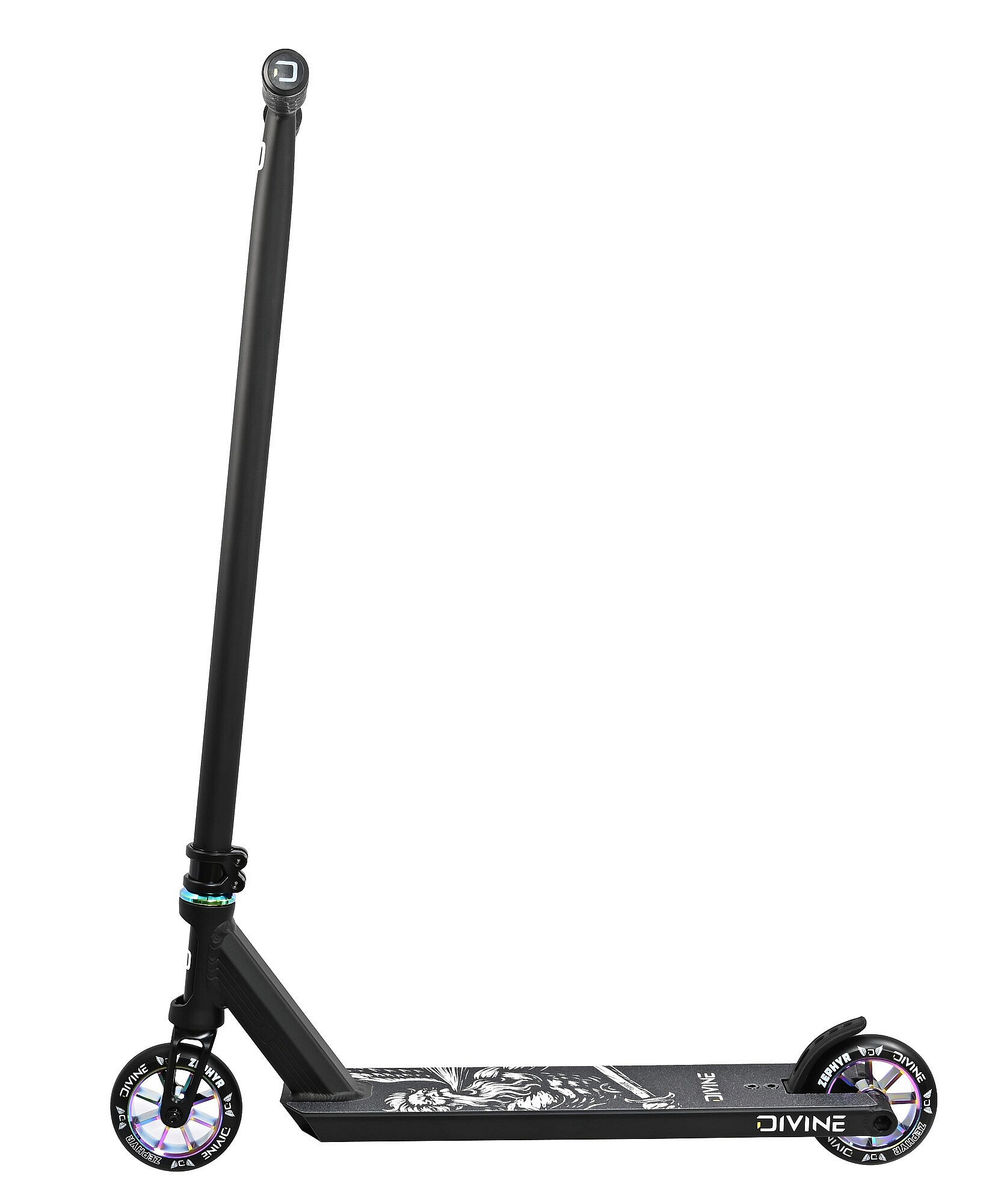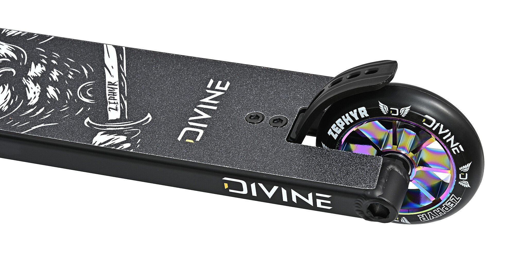 Divine Zephyr L Hybrid je freestyle koloběžka pro pokročilé jezdce, kteří hledají lehký komplet ve větší velikosti a zároveň preferují hybridní desku s hranatým zakončením.