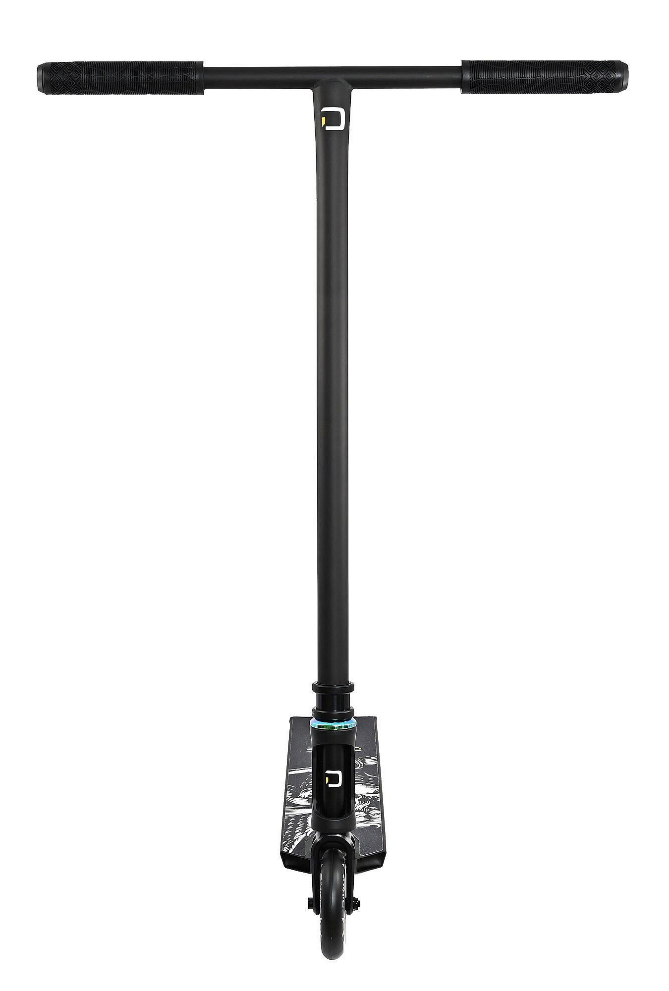 Koloběžka váží pouze 2970 g, takže patří mezi nejlehčí freestyle koloběžky ve své kategorii. Deska je vyrobena z hliníku 6082 T6, který vyniká vysokou pevností a umožňuje odlehčenou konstrukci bez zbytečných kompromisů. Rozměry desky 500 x 117 mm a footspace 360 mm poskytují více prostoru pro nohy, větší stabilitu a jistější postoj při dopadech i technickém ježdění.