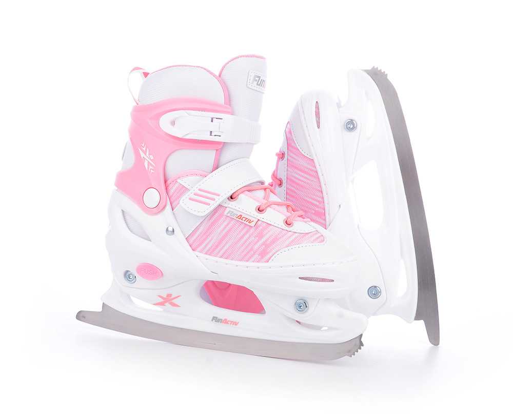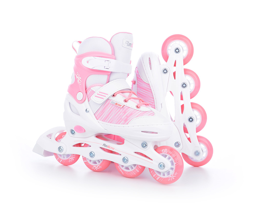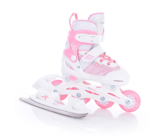 Dívčí roztahovací brusle 2v1 FunActiv ORIN GIRL DUO se speciální duální konstrukcí pro celoroční rekreační bruslení. Konstrukční systém umožňuje záměnu ledních nožů za podvozek s kolečky. Jednoduchým povolením dvou šroubů přeměníte zimní brusle na kolečkové inline brusle a naopak.