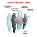 Chránič E-Line Elbow Guards je navržen pro ty nejnáročnější jízdy. Chránič je vybaven odolnými prvky, které umožní jezdci dovolit si víc a v případě pádu ho také více ochrání. Chránič kryje tvrdá skořepina, která lépe snáší přímý kontakt s terénem při pádu, aniž by se celý chránič mohl poškodit. Pod ní je umístěna další ochranná vrstva - tkanina Armortex odolná proti roztržení a oděru. Nejdůležitější vrstvu tvoří Smartflex – aktivní pěna G-Form, která nárazem ztuhne a lépe rozloží tlak na větší plochu a ochrání tak jezdce před poraněním. Poslední, vnitřní, vrstvou je měkká pěnová výstelka pro pohodlné nošení a jistější usazení chrániče. Nastavitelný spodní pásek se suchým zipem stabilizuje celý návlek. Větrání je zajištěno síťovinou použitou na zadní straně návleku a větracími kanály ve všech vrstvách chrániče.