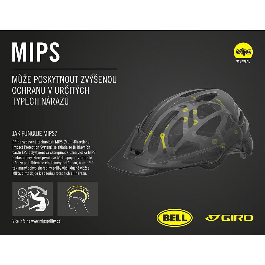 MIPS ( Multi-Directional Impact Protection System) poskytuje zvýšenou ochranu proti působení rotačních sil na hlavu. Více na www.MIPSprilby.cz