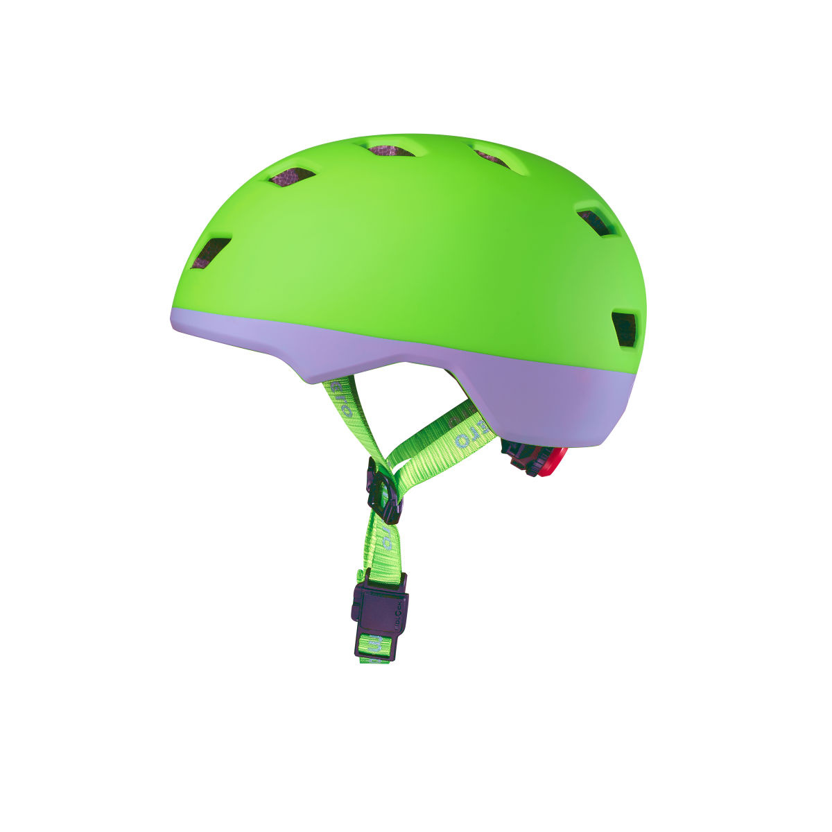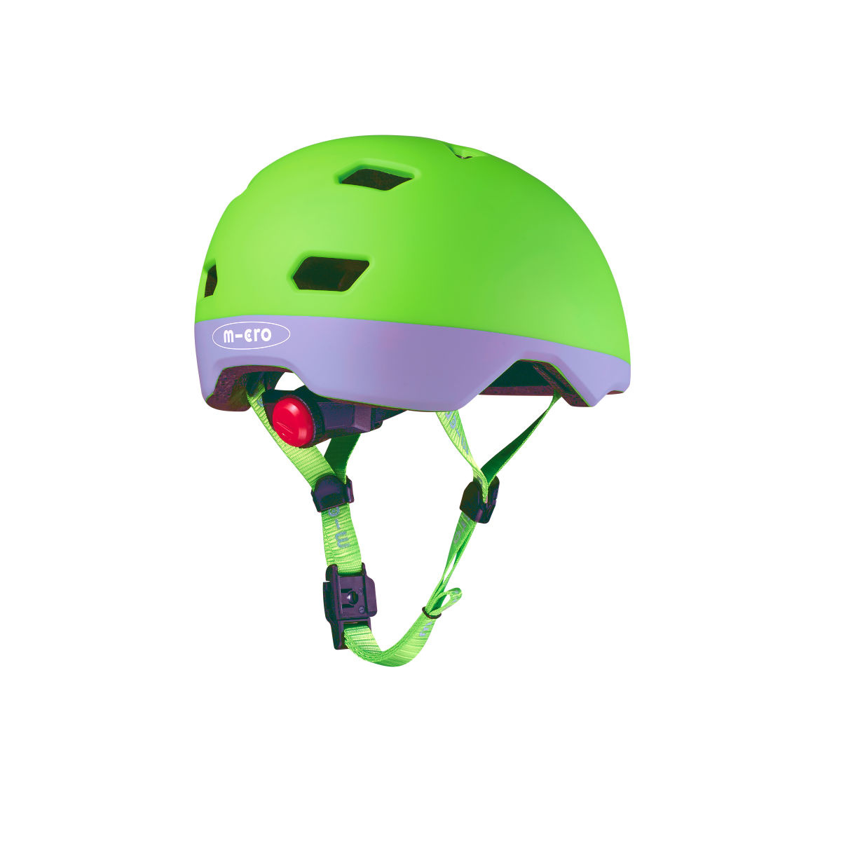 Bezpečná dětská helma na koloběžku od švýcarské značky Micro s nastavitelnou velikostí pomocí upínacího kolečka. helma je vhodná nejenom pro jízdu na koloběžce, ale i na dětském odrážedle, kolečkových bruslích a skateboardu. Extra polstrování uvnitř helmy pro větší komfort a bezpečí. 12 větracích otvorů zajistí kvalitní odvětrávání hlavy. Inovativní magnetický systém zapínání výrazně zvyšuje bezpečnost a zjednodušuje zapínání řemínku pod bradou. helma má LED světlo se třemi režimy (2 varianty blikání, 1x svícení). Baterie (CR1632 3V) je vyměnitelná otočením červené krytky za pomoci větší síly.