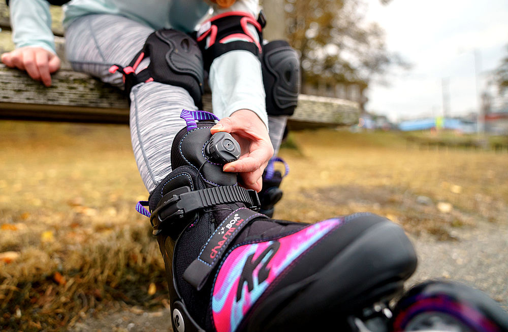 Je zajištěno rychloutahovacím systémem Boa s nylonovým lankem. Otáčením kolečka se navíjí lanko procházející celou bruslí, čímž dochází k rovnoměrnému a spolehlivému utažení nohy v brusli.