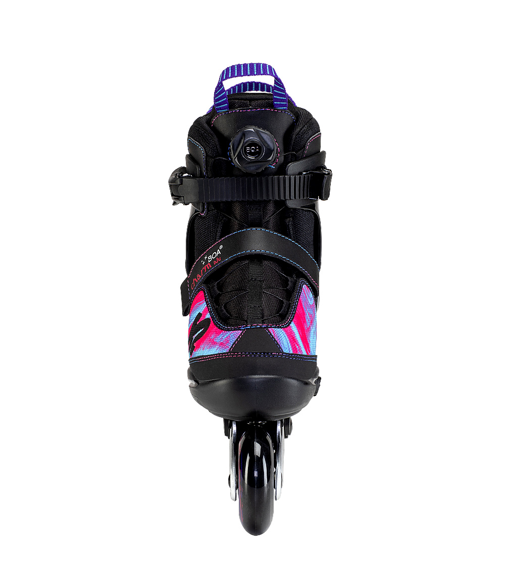 Dámské kolečkové brusle K2 Alexis 84 Boa jsou ideální model pro začátečnice i pokročilejší bruslařky vyžadující stabilní, obratnou a pohodlnou brusli. brusle jsou vybaveny rychloupínacím systémem Boa umožňujícím rychlé utažení bruslí otáčením kolečka a stahováním lanka, které je použito namísto tkaničky. Alexis 84 Boa jsou osazeny lehkým a pevným hliníkovým rámem s kolečky o průměru 84 mm. Bota s boční výztuhou a podporou klenby je vyrobena z paměťového materiálu, který se dotváří podle tvaru nohy.