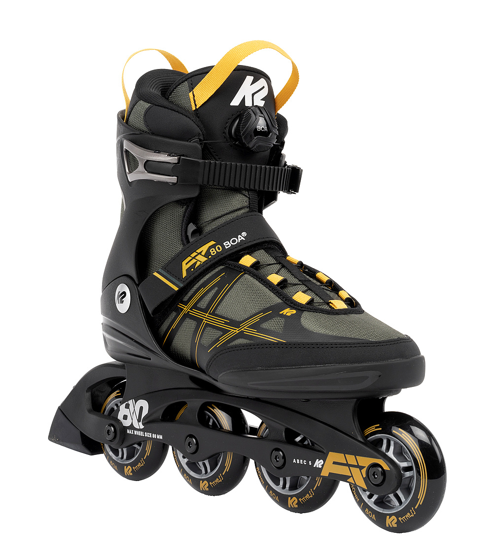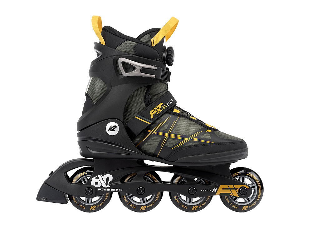 Pánské kolečkové brusle K2 F.I.T. 80 Boa jsou ideální model pro začínající a rekreační bruslaře vyžadující stabilní, obratnou a pohodlnou brusli. brusle jsou vybaveny rychloupínacím systémem BOA umožňujícím pohodlné utažení bruslí. Jsou osazeny lehkým a pevným rámem z plastového kompozitu F.B.I., kolečky o průměru 80 mm a kvalitními ložisky ABEC 5. Bota s boční výztuhou a oporou klenby je vyrobena z paměťového materiálu, který se dotváří podle tvaru nohy.