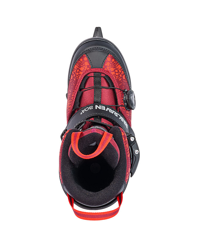 Dětské lední brusle K2 Rink Raven Ice Boa jsou nejvyšším modelem ze zimní nabídky výrobce K2. brusle lze jednoduše rozměrově přizpůsobit pomocí jednotlačítkového mechanismu, získáte tím až 5 velikostí, takže brusle porostou s nohou vašeho dítěte. Pohodlný systém fixace Boa umožňuje rychlé zavázání bruslí otáčením kolečka a stahováním lanka, které je použito namísto tkaničky. Komfortní bota K2 SoftBoot si zapamatuje tvar nohy každého bruslaře. Pověstný Stability Cuff zaručuje perfektní držení kotníků, nejpodceňovanější a zároveň nejdůležitější faktor při výběru kvalitních bruslí. Řešení je přesně na míru na úzké dětské kotníky, které dokáže pevně zafixovat a zároveň nikde netlačí. Boty jsou vyrobené z kvalitního voděodolného materiálu. Nůž bruslí je z nerezové oceli.