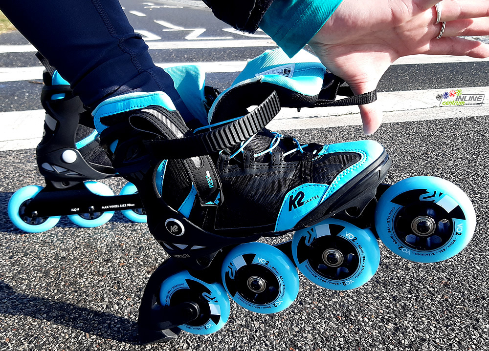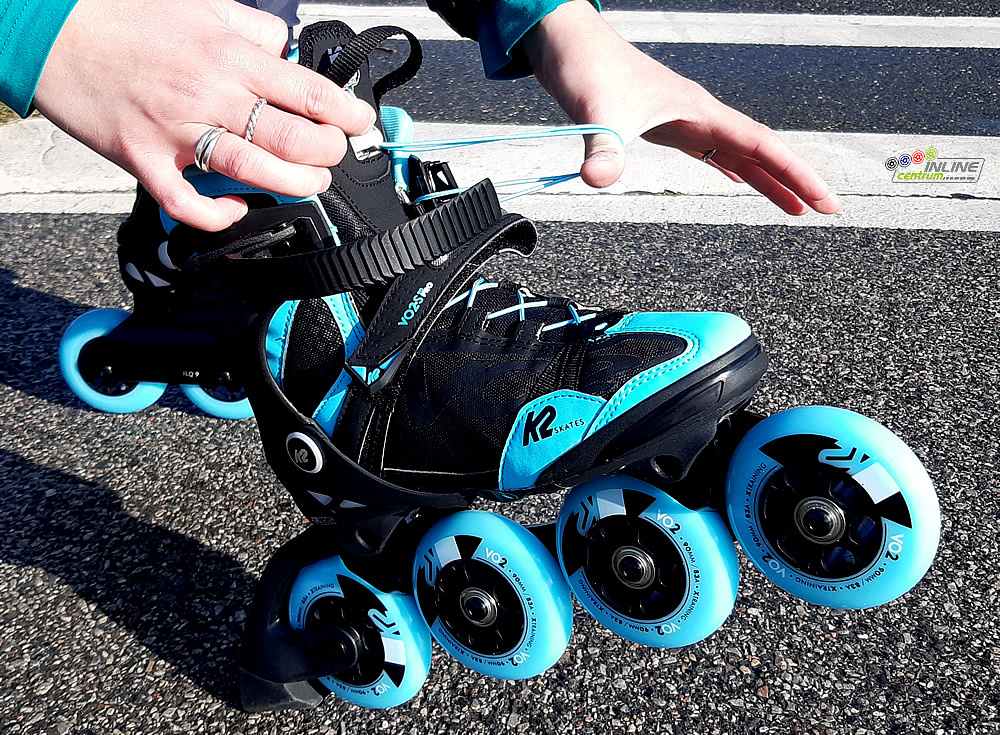 Je zajištěno rychloutahovacím systémem Speed Lacing, který umožní pohodlné, rovnoměrné a spolehlivé utažení nohy v brusli jedním zatažením. Po zatažení se tkanička sama zajistí a k povolení dojde jednoduchým stisknutím samozajišťovacího zámku na jazyku. Videorecenze rychlozavazování K2 Speed Lace.