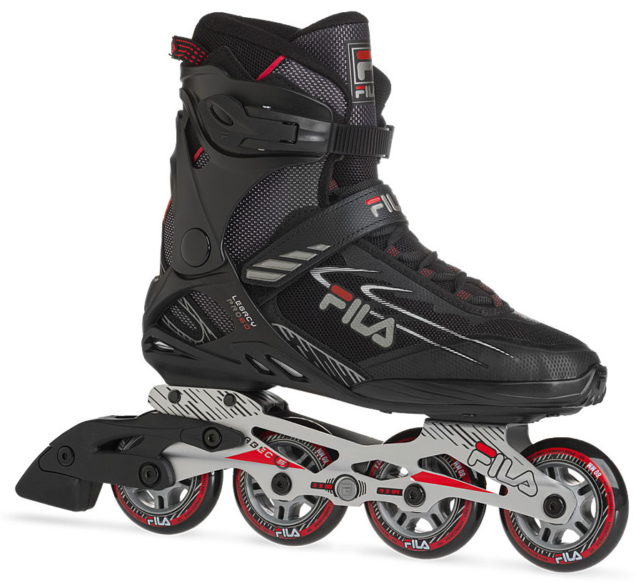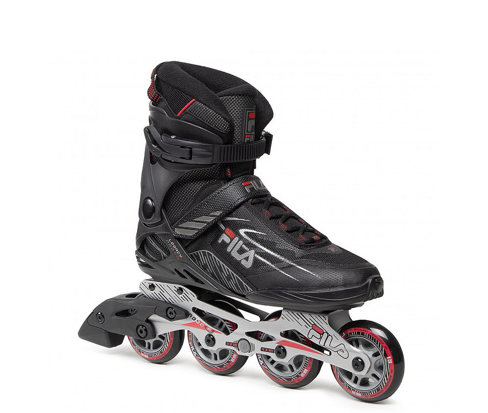 kolečkové brusle Fila Legacy Pro 80 Black/Red –pánské brusle pohodlné fitness brusle vhodné i pro začínající bruslaře, díky hliníkovému rámu jsou lehké a dobře ovladatelné.